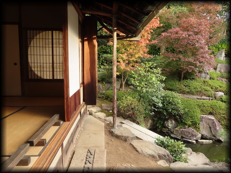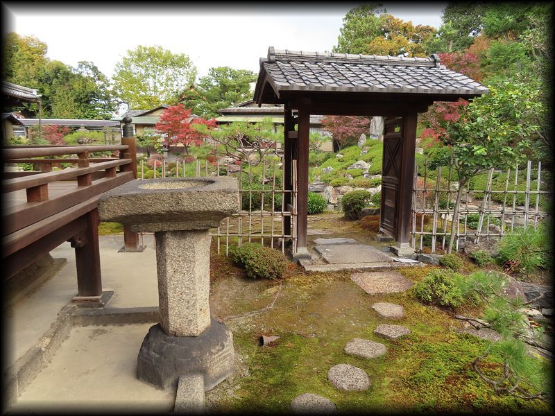 両茶室の前には、石灯籠や蹲踞(つくばい)を設置した露地が作られています。