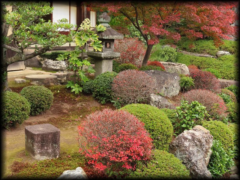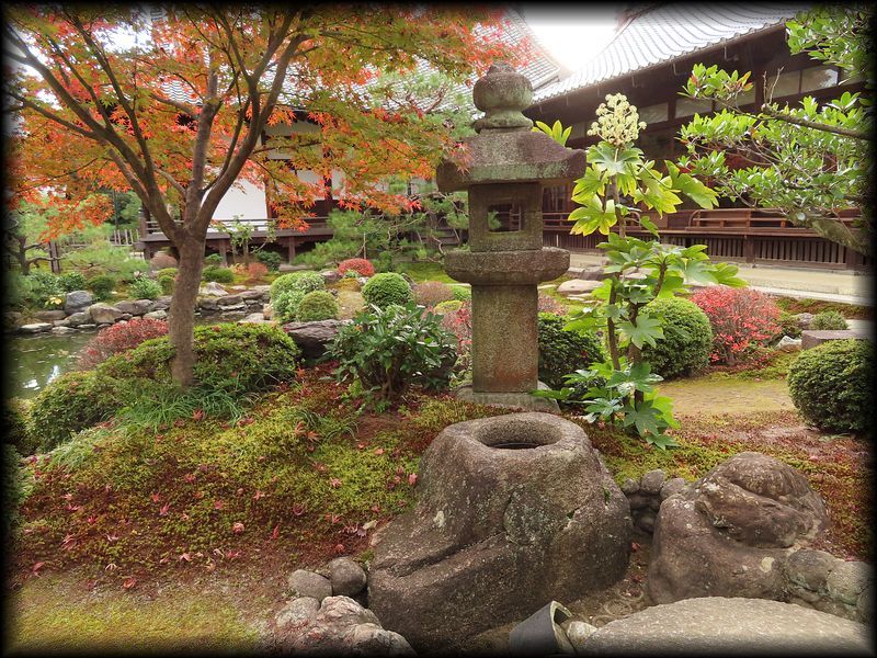 →方丈前苔庭、玄関前枯山水 大書院前の池泉庭園