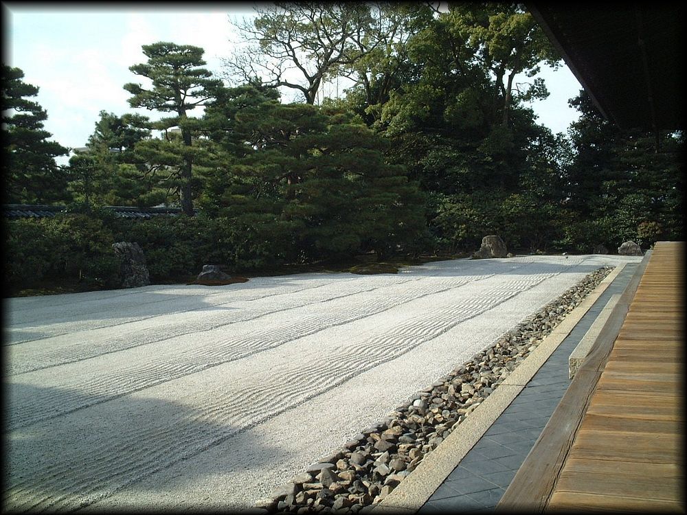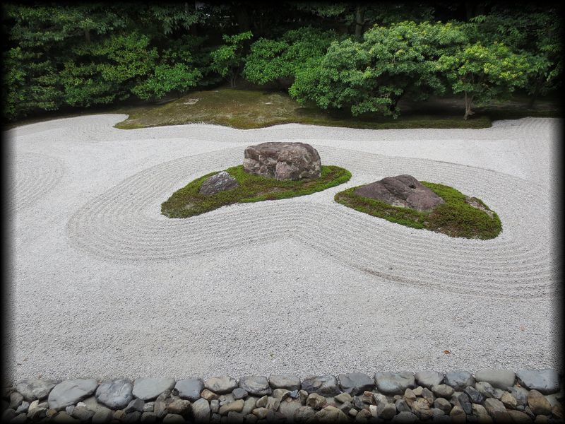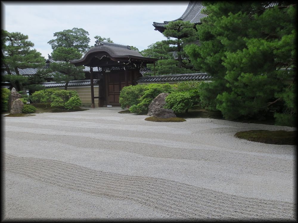 石と砂と緑の向こうに見える法堂の甍。現実から、墨絵の世界に誘ってくれる光景です。