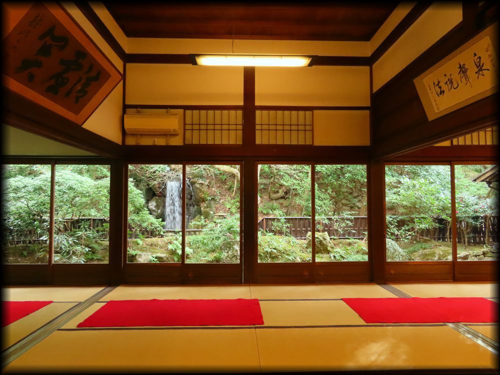 方丈では、この「滝の間」で別料金で抹茶を頂くこともできます。