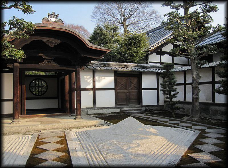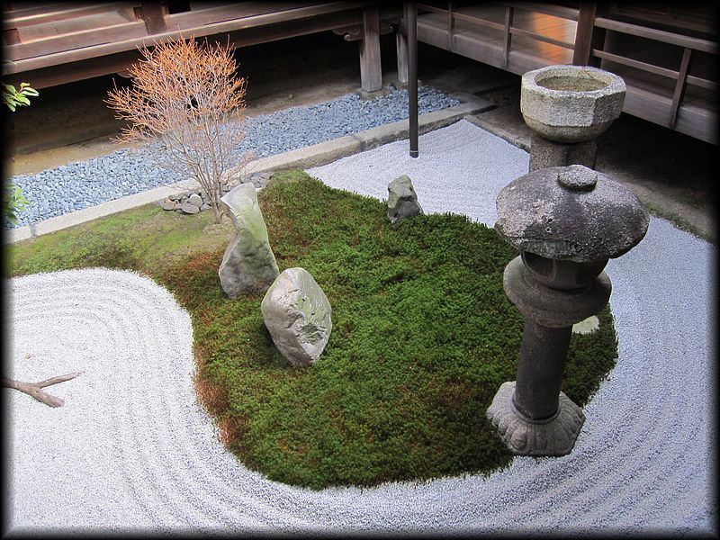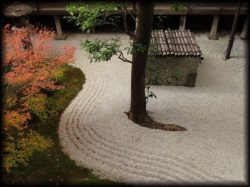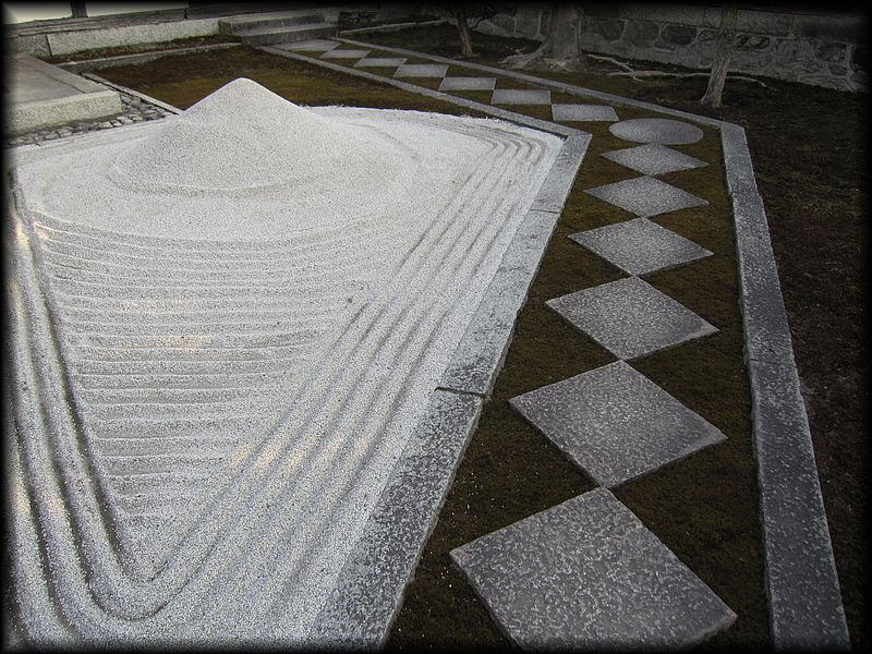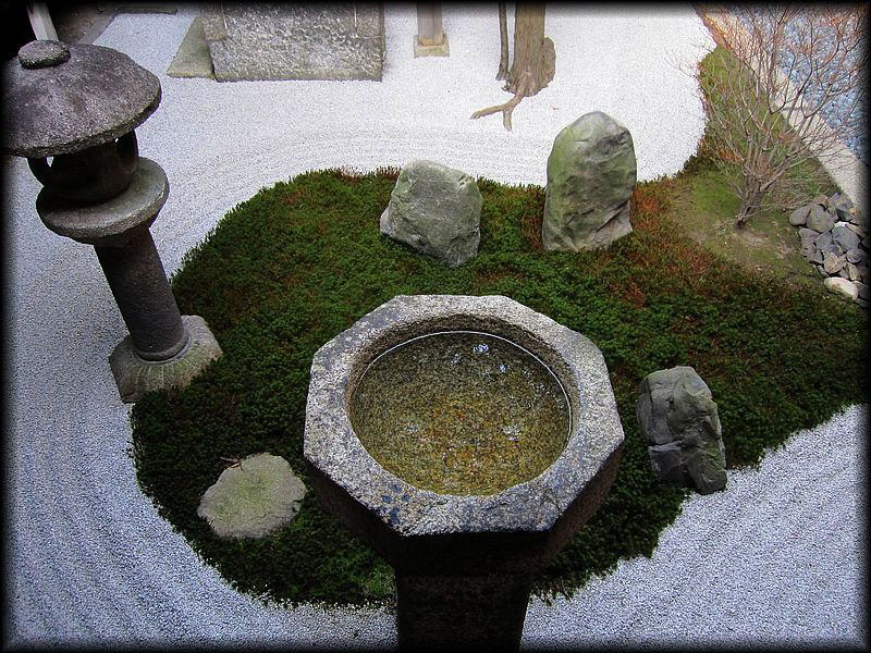 苔と白砂が織りなす幾何学的なこの模様、さて何を表しているのか。