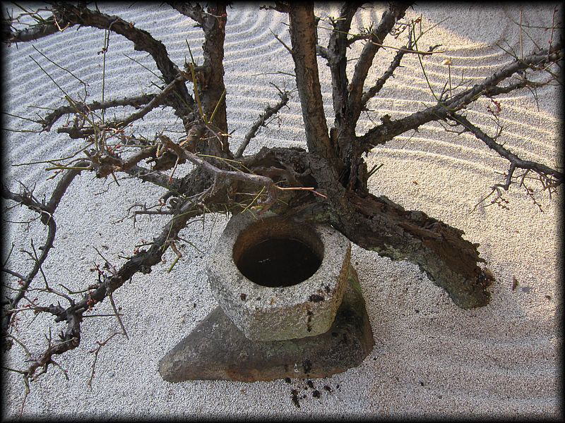 「凜」といえば、この梅も。白砂の上に伸びる枝には早くも蕾が。春、そこまで。