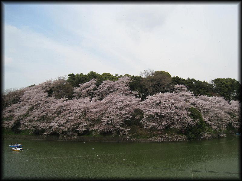 千鳥ヶ淵のお濠まで枝を伸ばす桜木、
