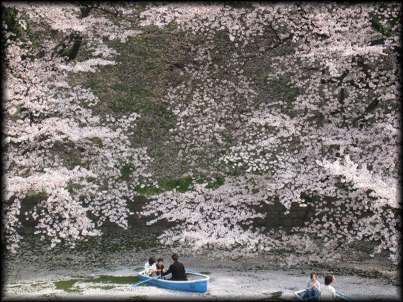 水面を埋め尽くす花びら。東京のど真ん中で、春爛漫の絵巻。