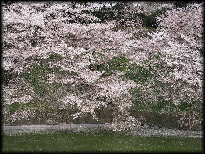 お濠を埋め尽くす花びら 九段下の駅から田安門まではこちらのページへ