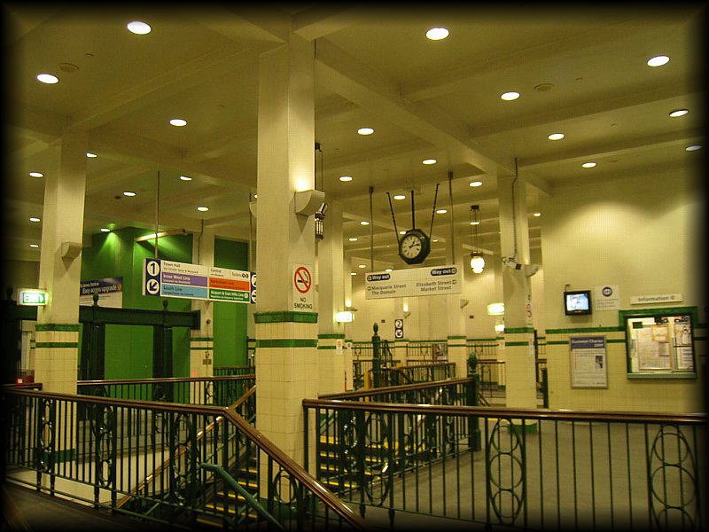 セントラル(中央駅)(MAP) ![]() シドニーの中央駅「セントラル」。個性的な時計塔は周辺のランドマークです。 ![]() セントラル駅に到着するシティーレールの電車。 全車2階建てですが、日本の電車と同じ清潔さを期待してはいけません。 シティーレールは基本的に安全ですが、夜は「セーフティーエリア」から乗りましょう (先頭車両などは誰も乗っていないので危ない感じ)。 ミュージアム駅(MAP) ![]() 地下駅はタウンホールを除いて、どの駅も個性的で各駅ごとに違うデザイン ミュージアム駅は赤茶色がテーマカラーですね。 セントジェームズ駅(MAP) ![]() セントジェームズ駅のテーマカラーは緑。 とても品があるグリーンは、公園(ハイドパーク)内に位置する駅としてぴったり。 ウインヤード駅(MAP) ![]() ウインヤード駅は青で統一されていますが、ミュージアムやセントジェームスほどの個性はないです。 ただ、各所に伝統を感じさせるアイテムがいっぱい。 サーキュラーキー駅(MAP) ![]() サーキュラーキー駅は地上駅。ハーバーブリッジやオペラハウスも駅から見渡せます。 グリーブ駅(ライトレール)(MAP) ![]() シティーレールの補助的な役割を果たすライトレールのグリーブ駅。 街中なのですが、ライトレールは中心部を避けて谷間を走っているためか、ちょっと郊外へ旅行に出掛けている感覚 ヘイマーケット駅(ライトレール)(MAP) ![]() 街中に入ると急に駅はシンプルに、速さも市電並になるライトレール。 自分は心の中で「シドニーの嵐電」と呼んでいました。 |