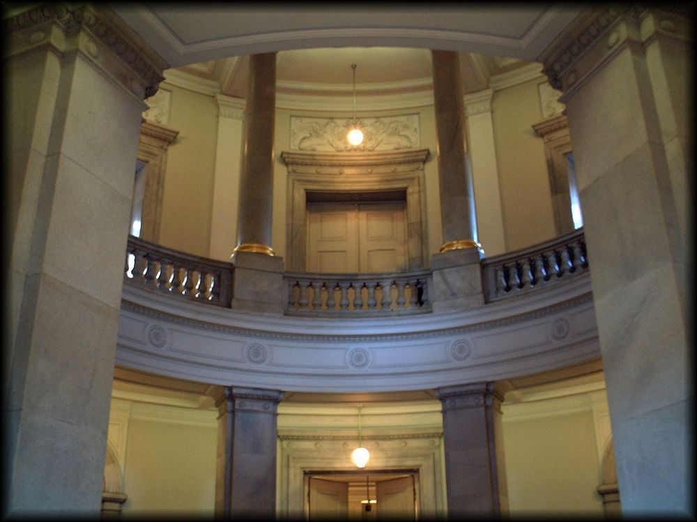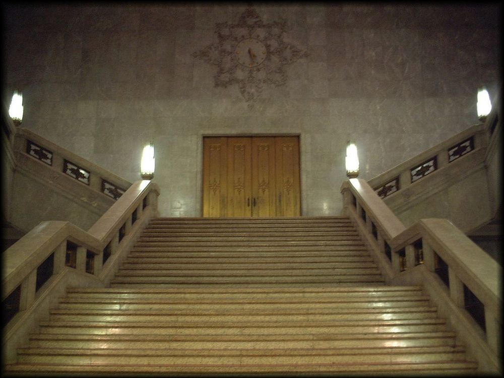 本館は1937年(昭和12年)竣工の帝冠様式。 中に入ると大理石の階段と壁がどっしりとした重厚感で迫ってきます。 こちらも装飾過多ではなく、建物本来の重厚感を堪能できます。 |