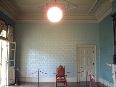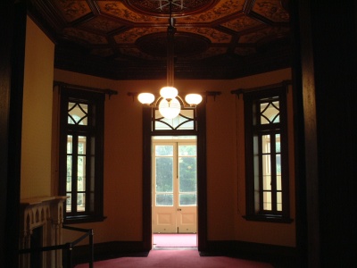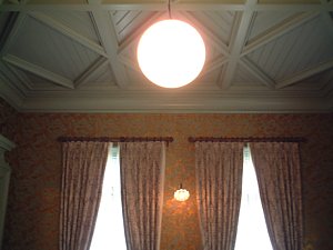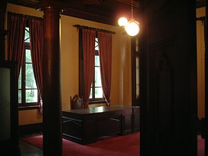 各部屋は原色というかカラフルな壁紙に覆われているため、ちょっと疲れてしまう。当時はさぞ「ハイカラ」だったと思いますが・・・・。