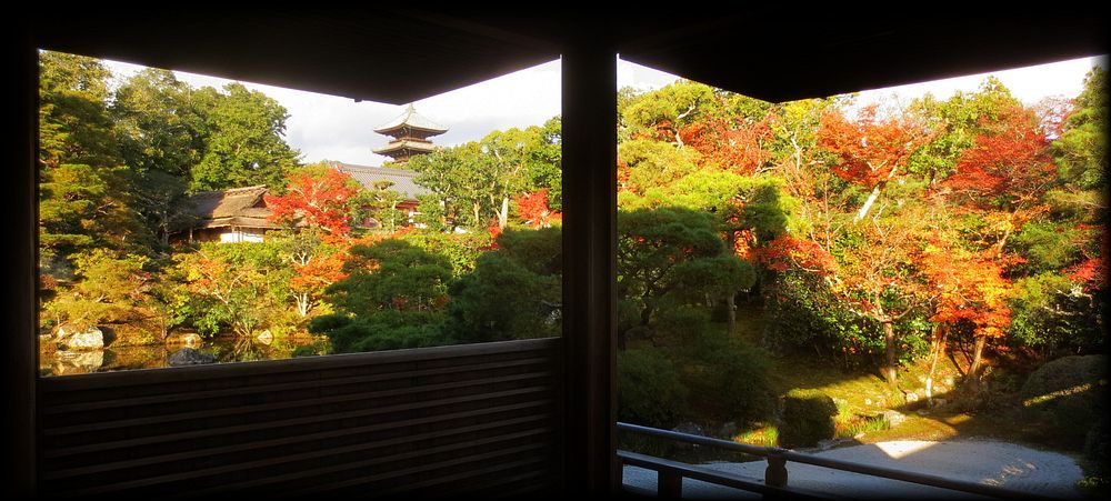 ![]() 仁和寺 池泉庭園 御室御所の名にふさわしい優美な庭。 塔が望める風景や曲線を描く池の形、どれも自然な造形で飽きません。 |