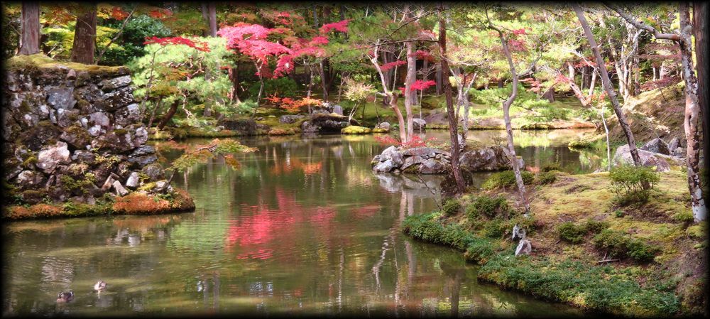 苔寺(西芳寺) 池泉庭園 枯山水の庭 苔寺(黄金池) 苔寺の苔庭(金剛池) 苔寺の枯山水と石組 苔寺の茶室と露地 苔寺の紅葉 苔一面の池泉庭園に、他の庭に大きな影響を与えた枯山水。日本庭園の原形をつくった、夢窓国師の傑作です。 11月の黄金池は美の極致、まさに「西方浄土」の世界でした。茶室周りの露地も簡素な美しさ |