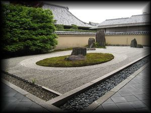 ![]() 大徳寺真珠庵 枯山水の庭 大徳寺 方丈東庭「七五三の庭」で有名ですが、特に書院「通僊院」と茶室「庭玉軒」の露地(撮影禁止)が傑作。 大仙院とともに境内全ての造形が完成された美しさで統一されています。 |