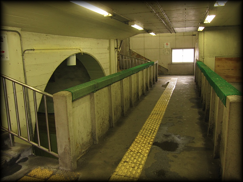 ![]() 国道駅の電車はほぼ20分に1本。昭和の雰囲気を堪能した後、 再び鶴見駅に戻る電車に。上りと下りのホームはこの通路で結ばれています。 |