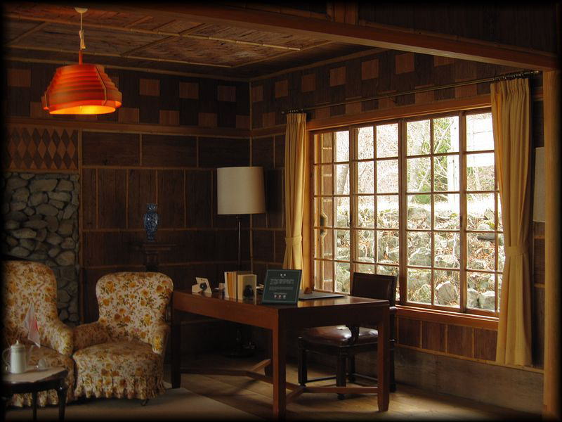 竣工:昭和3年 設計:アントニン・レーモンド Special thanks to Yuky R ![]() 中禅寺湖畔に建つレイモンド設計の元イタリア大使館別荘。 日光産の杉を外側や室内に使用した、とても趣がある建物です。霧の湖と木造の別荘――。幻想的な雰囲気を体験できました。 ![]() ![]() 杉の皮を貼り付けたありそうでない外観。木の風合い、色合いが微妙に異なり、一個の芸術作品になっています。煙突を囲む石も、現地で採石したものだそうです。 ![]() 室内も見事な杉の木貼り。幾何学的なデザインが美しい ![]() こちらは全面に窓を配置した湖畔のテラス。「あっ」と息を呑むほどの眺望と開放感 ![]() 木の香りに包まれて、2階に上がってみましょう。 ![]() ![]() 2階寝室からの眺め。ウッドデッキも見えます。 ![]() ウッドデッキもまた幾何学的なデザイン。木というありふれた素材を使っても、ちょっとした工夫で、ここまで印象が変わるものなんですね。 ![]() ウッドデッキの横には専用の桟橋も。この別荘はほかの人工建築物がいっさい見えない場所に建設されているため、ここから眺める湖の風景は格別 ![]() 小一時間で霧がさらに深くなってきました。 ![]() 初めての中禅寺湖。秀麗な男体山とまだ葉を付けていない梢、一枚の絵のような光景でした。 |