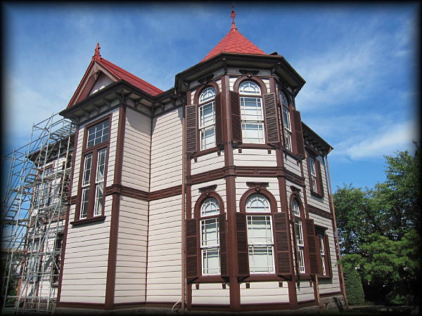 ![]() 旧弘前市立図書館 弘前近代建築の白眉。旧東奥義塾内に設置。 ![]() 旧東奥義塾外国人教師館 周囲には、弘前の洋館を集めたミニチュアの模型 ![]() 弘前学院旧外人宣教師館 ベージュを基調とした色合いが見事。重要文化財 ![]() 旧制弘前高校外国人教師館 私立の教師館よりさらに小ぶりな感じでした。洒落た小建築 ![]() 鏡ヶ丘記念館(旧弘前中学校舎) 堂々とした木造建築。朱色がかった窓枠が木目の色とぴったり → 弘前旅行記 |