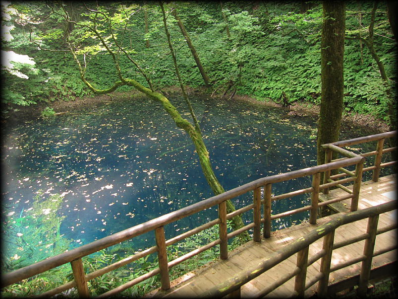 ![]() 白神山地の周縁に点在する十二湖(33の池で構成)。 初めに目にした池には夏の青空と木々が鏡のように映っていました。 ![]() 目指すは、神秘的な青色で有名な青池。バス停から10分ほどで到着です。 確かにこれほど透き通るような「青さ」を湛える池は観たことないですね。太陽が池の底まで。すごく美しい。 ![]() ![]() なぜこれほど青いのかは分かっていないそうです。池の底に沈む枯れ木まで青に染めている吸い込まれそうな碧さ ![]() ![]() 青池には洒落た、簡素なバルコニーが設けられているので、ゆっくり眺めることが可能。ひとりで池を見つめる時間は贅沢でした。 ![]() ![]() 青池の周辺はブナの自生林。シダが群生する緑一色の世界も綺麗でした。 ![]() ![]() 青池からさらに10分ほど歩くと、沸壺池。おぉ、こちらは青というよりエメラルド! 青池ほどの神秘さはないかもしれませんが(何となく明るい雰囲気)、水の色はこちらの方が透明で綺麗かも。 ![]() 沸壺池から流れる清水は下流で飲むことができます。 味はよく分からなかったけど、とにかく冷たくて気持ちがよかった・・・・・。 訪れた日はとにかく暑く、これ以上歩けないと思ったので、予定を早めて不老ふ死温泉に向かいました。 → 弘前旅行記 |