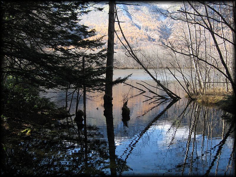 田代池〜河童橋 河童橋〜明神橋 ![]() ![]() 4月と11月の大正池。穂高の山並みはあいにく雲に覆われていましたが、幻想的な風景が目の前に――。 季節によって、時間によって、全く表情が異なる自然の造形が上高地の大きな魅力です。 ![]() ![]() 焼岳を映す大正池。水の美しさ、雑木林の梢の並びが印象的です(上の写真は4月、下は11月です)。 ![]() ![]() ![]() 池には多くの立木が枯れたまま立っているのですが、なぜか全く寂しい雰囲気は感じません。 美しく、幻想的でありながら、とても「明るい」。この心地よい明るさも上高地の大きな魅力と思います。 ![]() 大正池を後にして、田代池に向かいます。自然に配慮した上で、歩きやすい遊歩道などが整備されていることも、 上高地に親しみを感じる理由かもしれません。 ![]() ![]() しばらく歩くと田代湿原に到着です。視界が一挙に広がります(上の写真は4月、下は11月です)。 ここで遊歩道を右に進むと、田代池です。 |