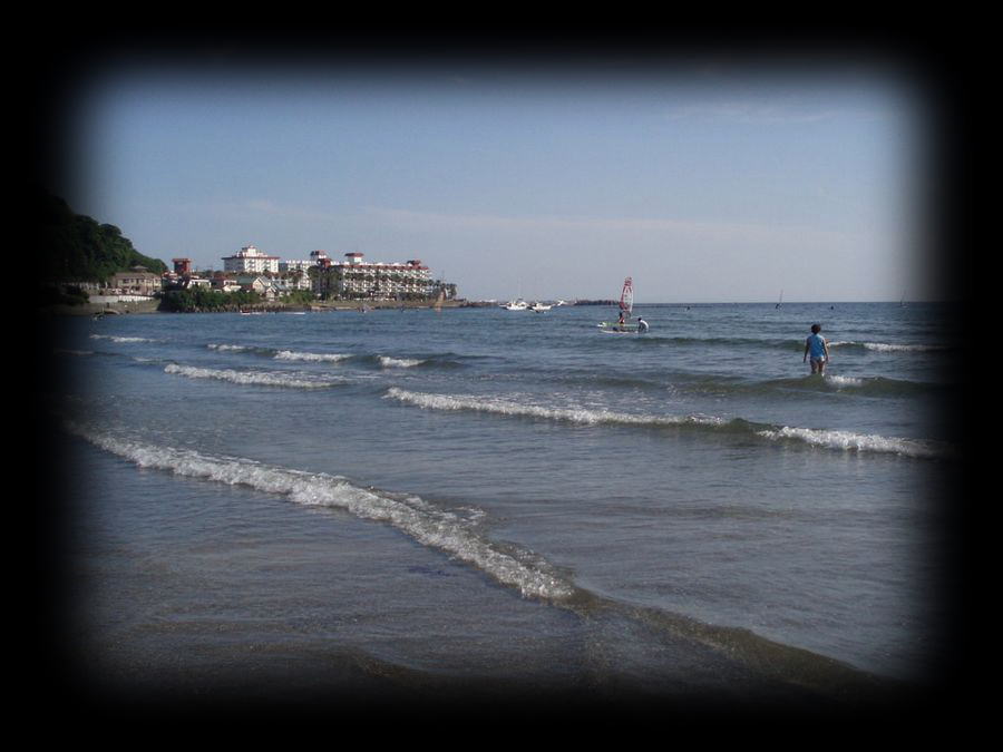 から歩いてすぐの材木座海岸。意外に水は綺麗。
