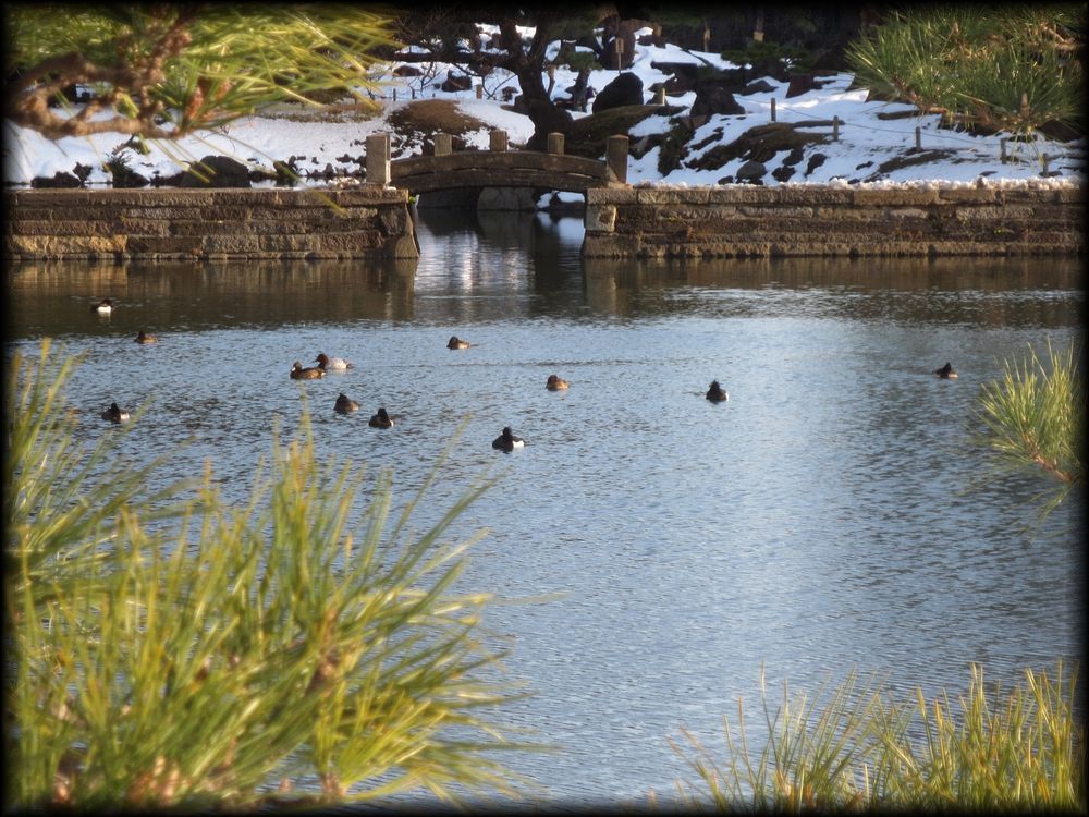 旧芝離宮恩賜庭園 (東京都港区) 東京の庭園 MAP 東京の大名庭園 雪の芝離宮![]() 浜松町駅からすぐ近くにある旧芝離宮恩賜庭園。都心でこれだけの庭を鑑賞できる東京の凄さ! ![]() ![]() ![]() まずこの庭園最大の魅力は、小石川後楽園など他の大名庭園にもある、中国の西湖の堤(蘇堤)を模した「西湖堤」。 ここの西湖堤はその中でも、最も端正で美しいと思います。 ![]() ![]() ![]() 西湖堤は通行することができます。江戸時代には、諸大名が憧れた中国・西湖の堤の上を歩ける贅沢さ ![]() この水中に浮かぶ石灯籠も、とても印象的でした。 ![]() ![]() ![]() 見どころも多く、大名庭園の中では垢抜けた造りの名園なのですが、写真でも分かるように、浜離宮と同じく周辺をビルで囲まれて借景がズタズタ。 東京の都心近くなので仕方がないのですが、ビルを写さないように心がけても水面に映ってしまうという――。 ![]() ![]() それでも護岸や各所の石組みは見事で、やはり名園だなぁと思うのですが、借景が空だけだったら本当に美しい名園だったでしょうね。 →雪の芝離宮 旧芝離宮庭園はさまざまな所有者を経て、紀伊藩の浜屋敷として使用された後、 明治に入って有栖川宮邸になりました。さらにその後、宮内省が買い上げ、大正時代に東京都(当時は東京市)の所有として現在に至ります。 Copyright © Goto.N. All Rights Reserved |
