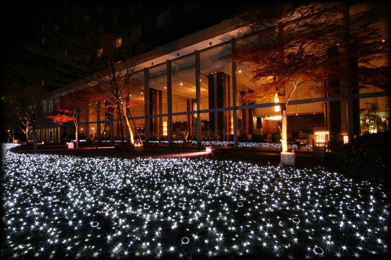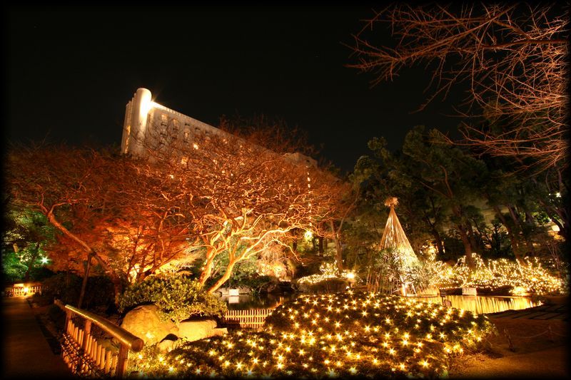 ライトアップされた夜、庭園はがらっと様相を変えて、豪華で幻想的な雰囲気に