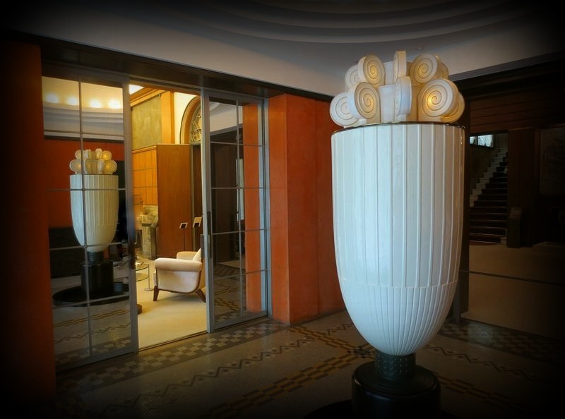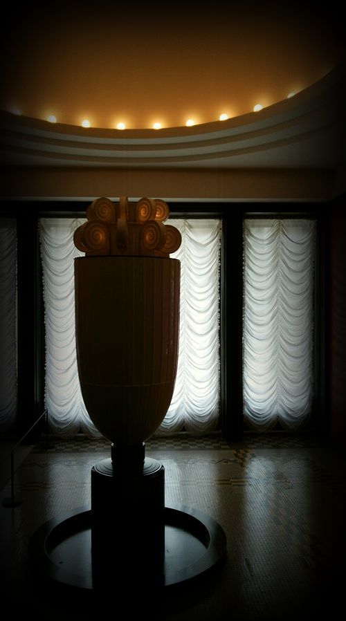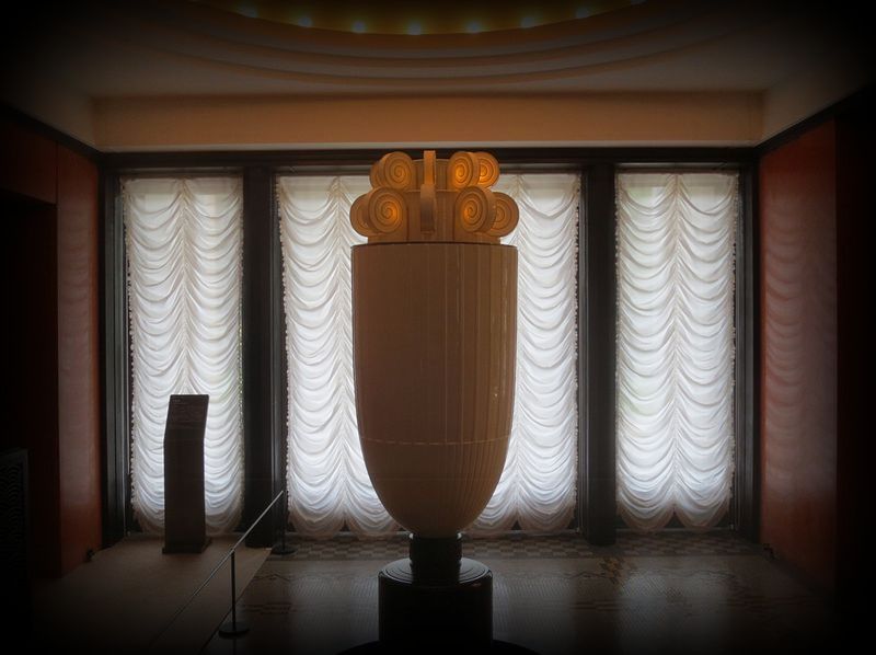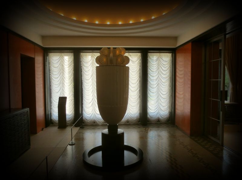 アールデコの建築 東京の近代建築 トップページ MAP ![]() 旧朝香宮邸の象徴でもある香水塔。 フランス人のアンリ・ラパンが1932(昭和7)年にデザインし、フランス国立セーブル製陶所で製作されました。 ![]() ![]() ![]() 上の照明部分に香水を施し、照明の熱で香りを漂わせるという とても優雅な仕組みだったそうです。個性的な、しかしシンプルなデザインは観ていて飽きません。 ![]() ![]() 香水塔が設置された「次の室(つぎのま)」は人造石でできた朱色の壁で囲まれ、 床はモザイクになっています。 ![]() ![]() そして白漆喰の円形天井とそこに埋め込まれた照明。 戦前にこのような斬新な空間が創られていたことは、ただただ驚きです。 ![]() 「次の室」は大広間から大客室につながる動線上に配置されています。 ![]() 「次の室」の横に配置された小客室(大客室と反対側)から観る香水塔。 どこから観ても大きな存在感を示していますが、自己主張しすぎない気品が最大の魅力かな。 ![]() 大客室から観る香水塔。当時の貴賓は、この光景をどんな感覚で捉えていたのでしょうか。 |