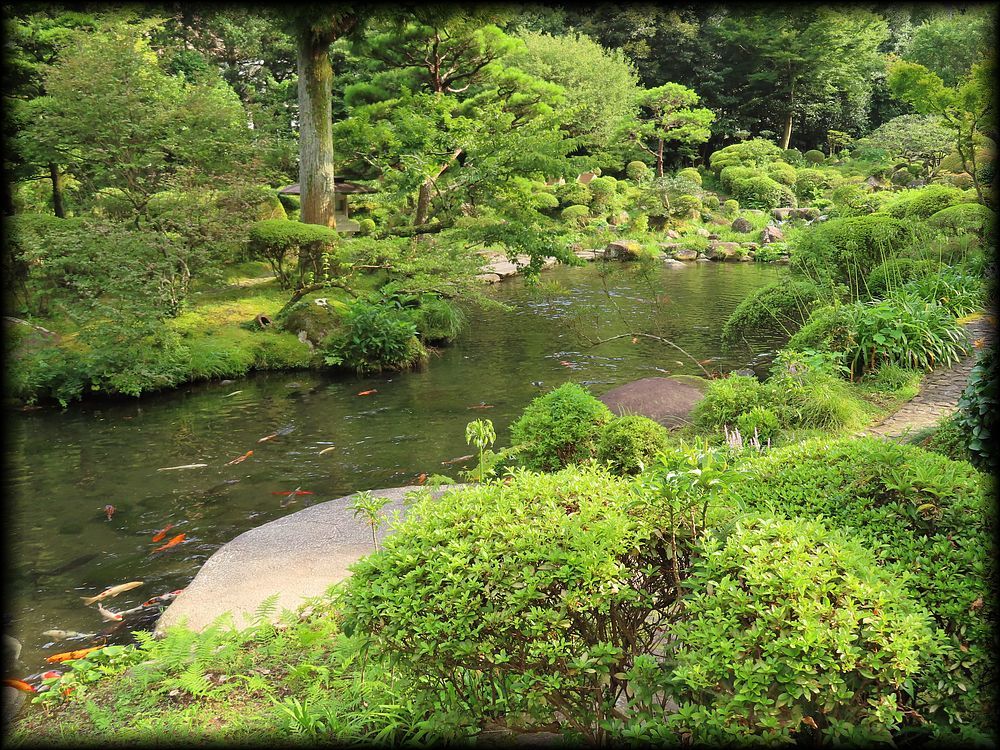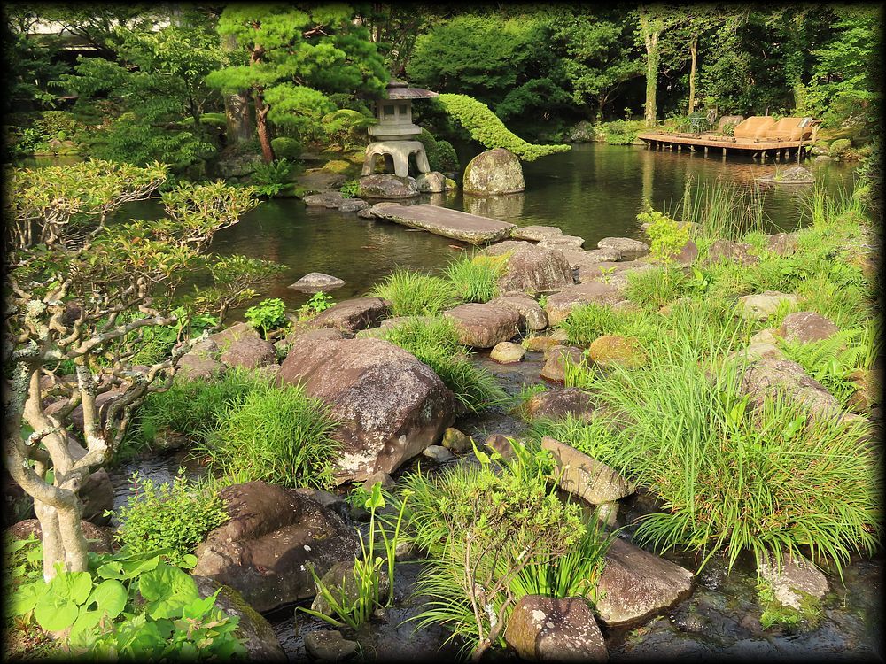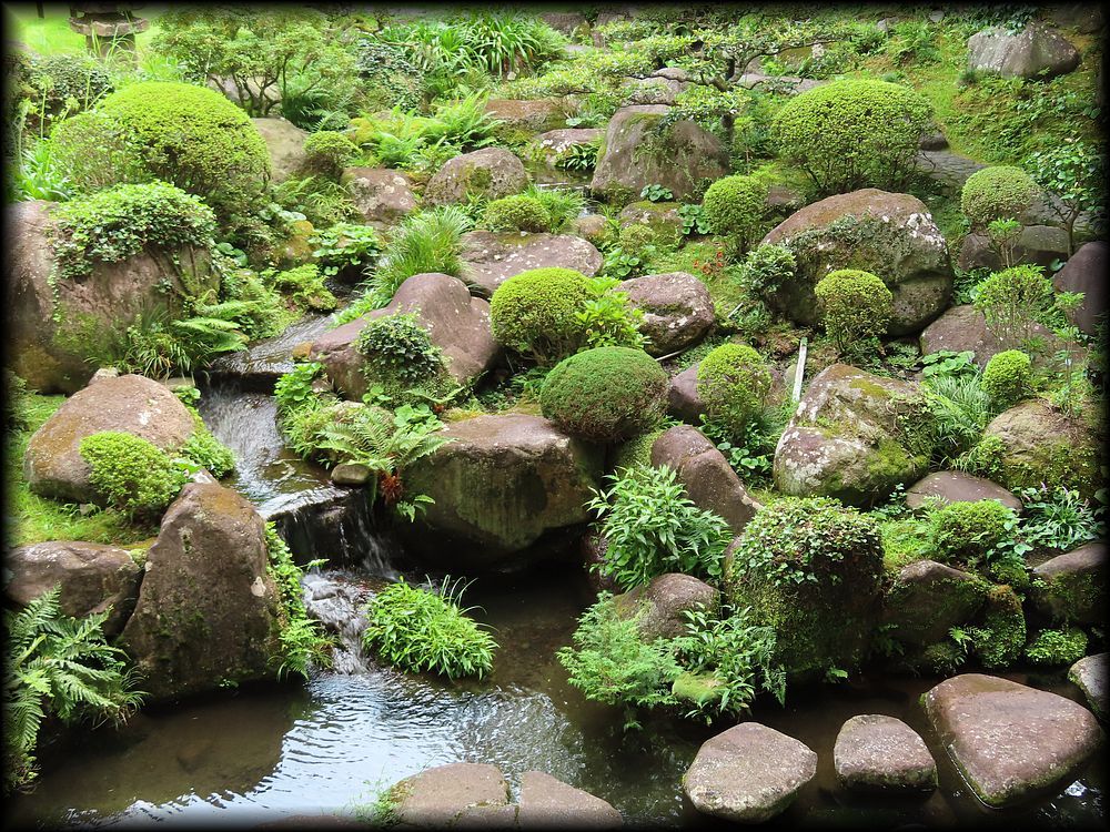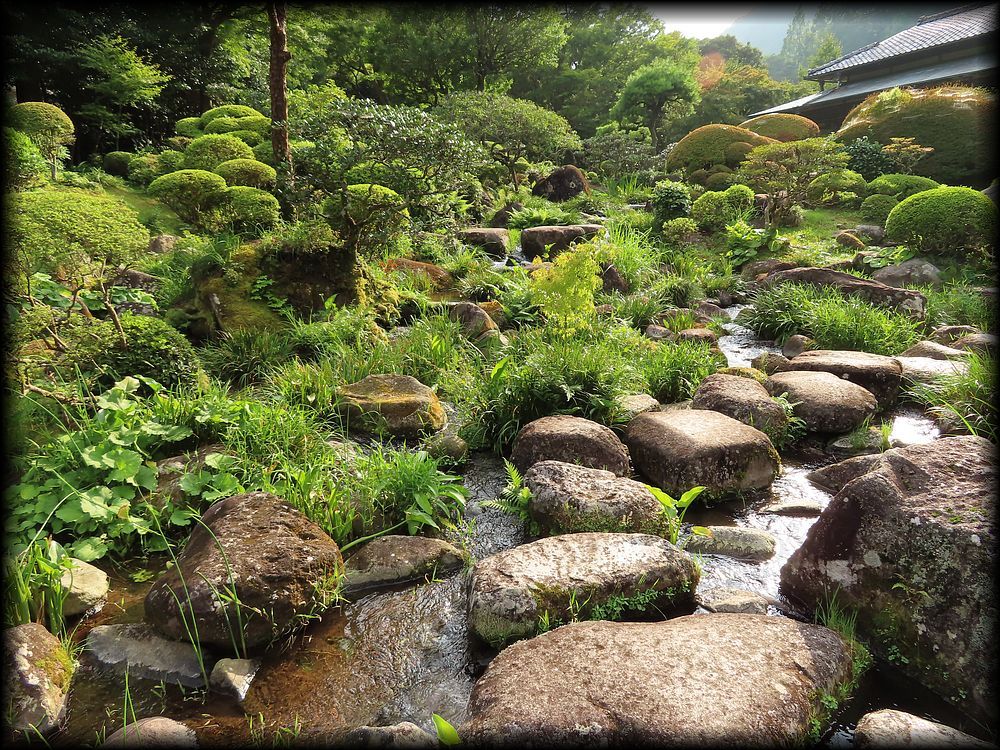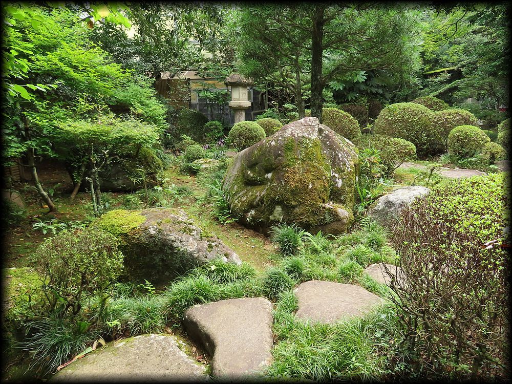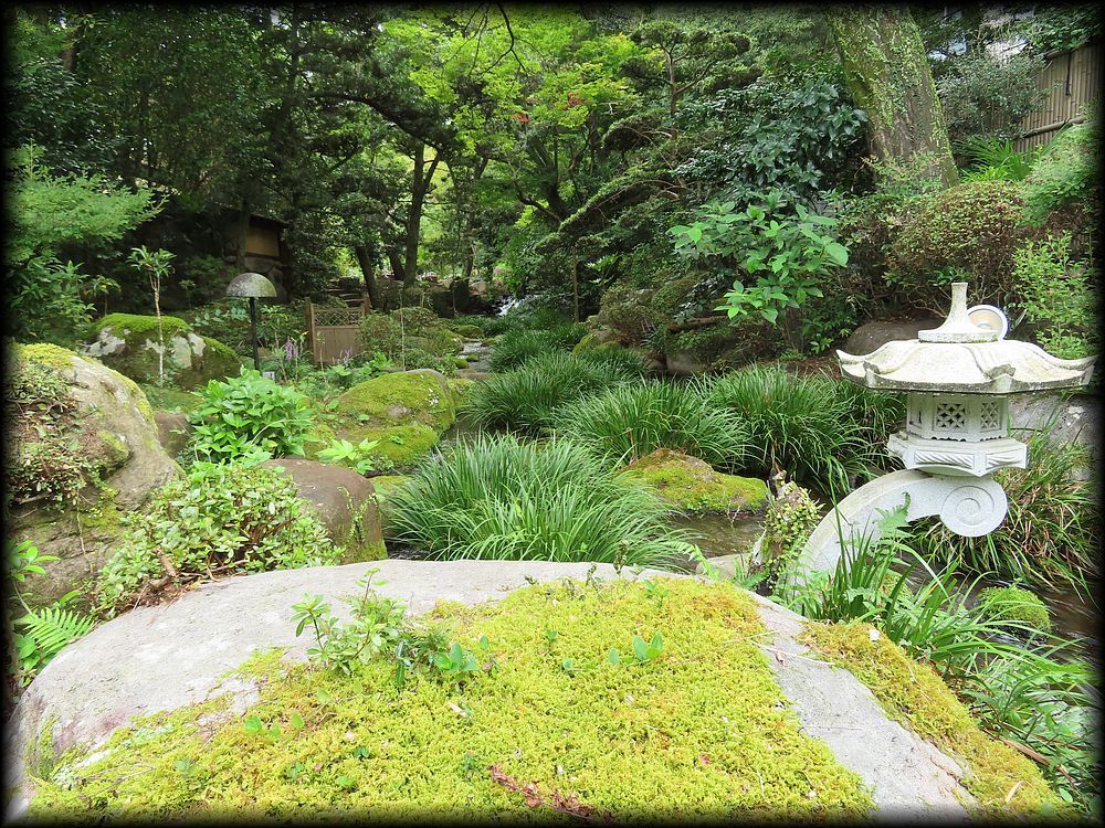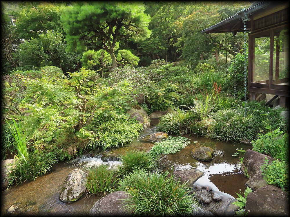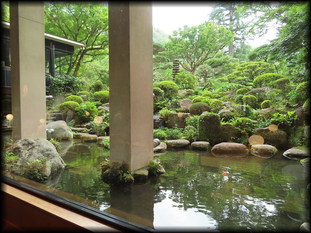 ![]() ![]() ![]() 広さ一万坪の庭園の中核となる山月園は、岩崎彌之助の別邸から引き継がれた大きな文化遺産。その主役が大池です。 ![]() 大雪見燈籠と、本小松石の飛び石。大迫力です。 ![]() ![]() 深い緑に覆われた大池。ただ広々としているだけではなく、絶妙な形の飛び石や護岸石を配置するなど、 細かい部分まで行き届いた作りになっています。 ![]() 絶景を眺めることができる場所にはお休みどころも ![]() ![]() ![]() ![]() 山月園に限らず、吉池旅館の庭は「水の流れ」がとても巧みに演出されています。岩崎邸和館の方向からから流れ出た水は大池へ。 ![]() ![]() 山月園から、建物の下をくぐると山荘庭園。開放的な大池を象徴とする山月園と比べて、少し陰影が濃くなります。 ![]() ![]() 山荘庭園も主役は水。はるか彼方から続く清流が石の間を通り抜け、さわやかなせせらぎに。涼感を誘います。 ![]() 1日中歩いても、ぼ〜っとしていても飽きが来ない吉池の庭。季節ごとに何回でも訪れたいですね。 今回は日程の都合で、日帰り入浴だけだったのですが、帰りにはちゃんと笑顔でお見送りまで。老舗旅館の誇りを感じました。 岩崎彌之助別邸と徳川家茶室「真光庵」 |