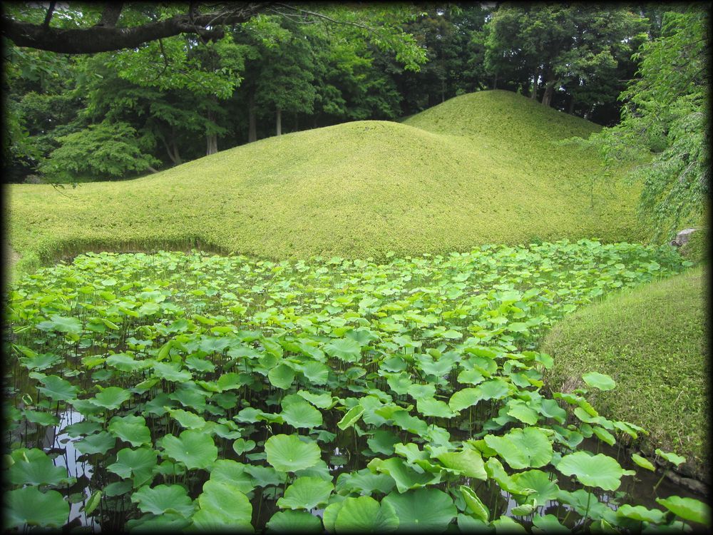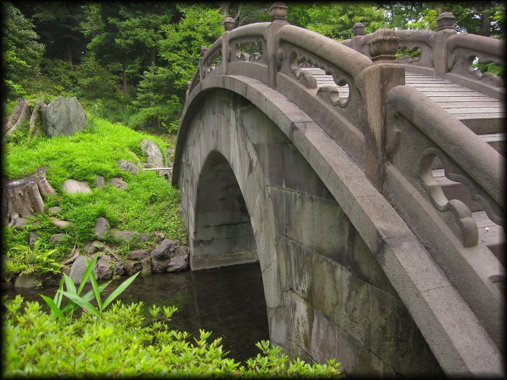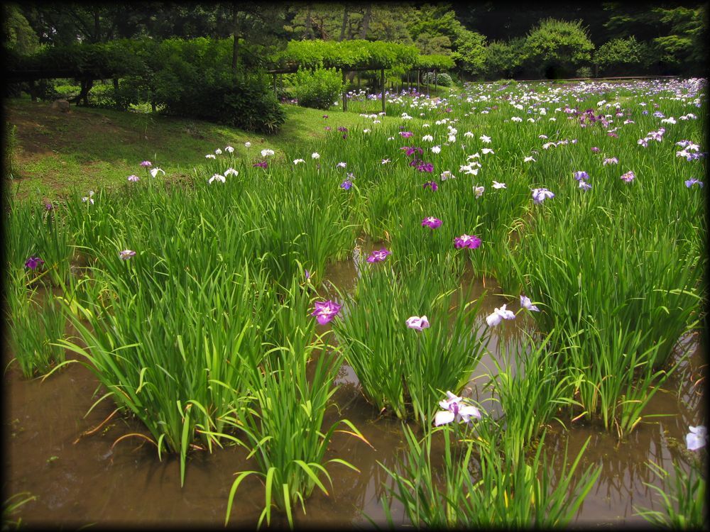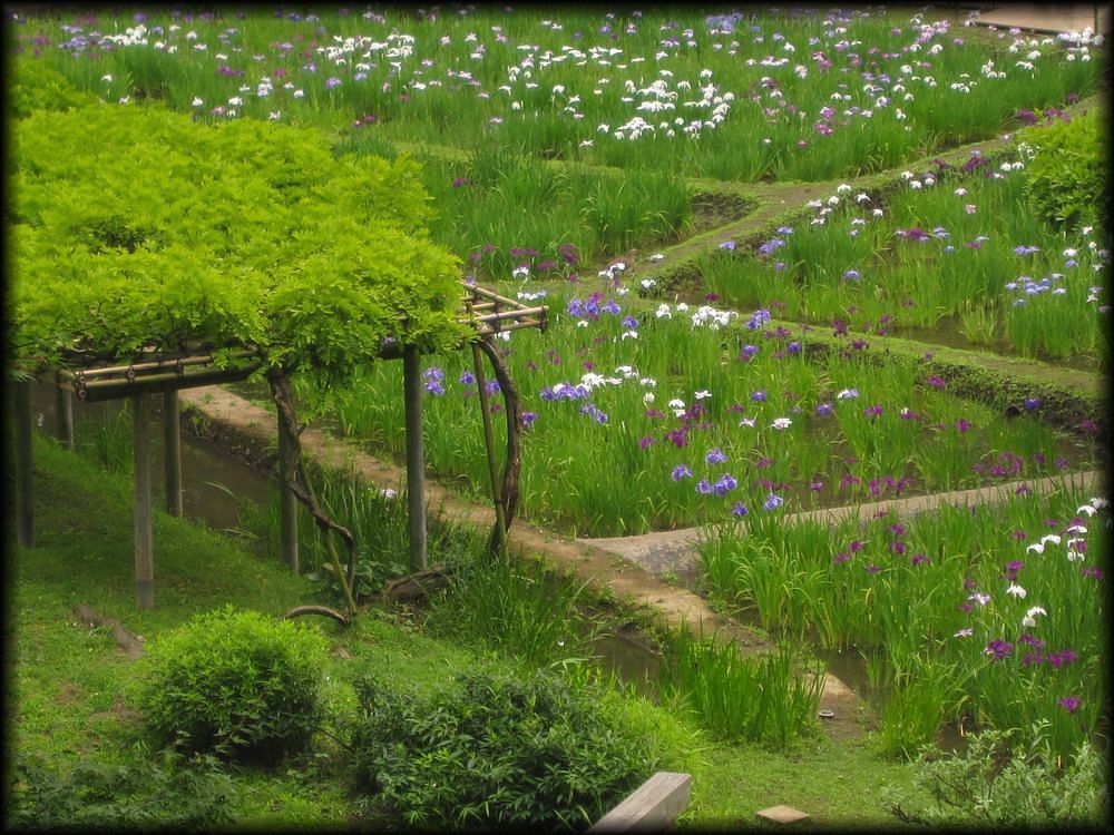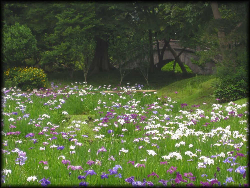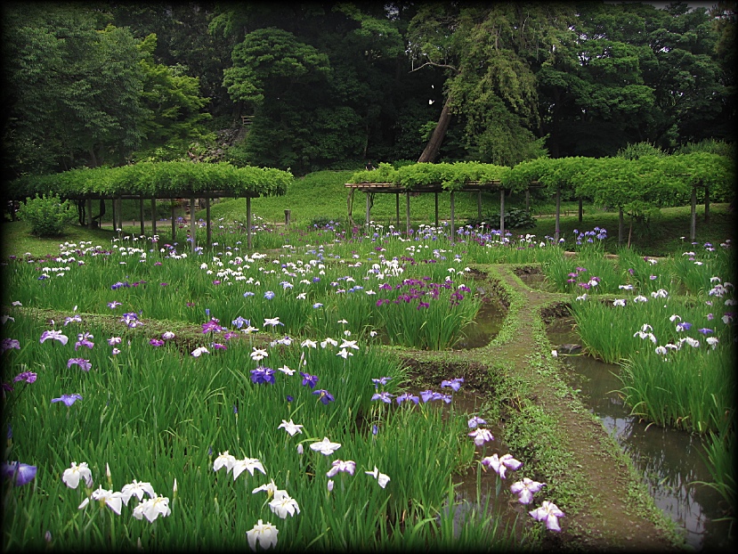 小石川後楽園 菖蒲田、円月橋、通天橋など (東京都文京区) 東京の庭園 東京の大名庭園 トップページ MAP ![]() 西門周辺の小廬山、大堰川、通天橋。さらに庭園北部の円月橋などを歩いてみました。 メインの部分である大泉水と内庭部分はこちらのページを参照して下さい。 大泉水後楽園は六義園と同様、各地の名所を風景に採り入れた「名所写し」の庭となっていますが、 中国の明から亡命し、水戸家に仕えた儒学者・朱舜水の影響を受け、中国の名所や庭園様式も組み込まれています。 六義園を女性的な「和歌の庭」とするなら、こちらは中国趣味に溢れた男性的な庭。 名称を中国宋代に著された「岳陽楼記」から採用し、庭園の随所に中国の名所の名前を冠した景観を配しています。 ![]() ![]() 以前の唯一の入り口だった西門(現在も開放されています)から入って最初に目に入る小廬山。 一面が笹に覆われています。中国の景勝地・廬山に似ていることから、 江戸の儒学者・林羅山が名づけたとされていますが、富士山の写しとも言われています。優美な造形ですね。 ![]() 屏風岩から望む渡月橋(モデルは京都の嵐山)と西湖堤(中国の杭州)。京都と中国の名勝を組み合わせた風景です。 ![]() ![]() 西湖堤は旧芝離宮庭園など他の大名庭園でも設置されていますが、後楽園が最初に西湖堤を造ったとされています。 ![]() ![]() 通天橋(京都の東福寺)と通天橋から観た大堰川と渡月橋(ともに京都の嵐山)。深山幽谷の趣で、ここからの風景も気持ちいい。 ![]() 11月中旬に訪れたときの通天橋周辺。紅葉で有名な東福寺を模倣しただけあり、見事な紅葉でした。 ![]() 大堰川に配された石の数々。現代の感覚に通じるオブジェのような配置です。 ![]() ![]() 後楽園は6月頃、花菖蒲が咲き誇ります。鎌倉の明月院よりも広い範囲に菖蒲が植えられ、 都心とは思えない農村的な風景が拡がっていました。 ![]() ![]() 訪れた日は満開とまでは行かなかったのですが、それでも都心でこれだけの花菖蒲を楽しめる場所は貴重 ![]() ![]() 旧江戸城二の丸庭園とともに、花菖蒲の観賞では東京の都心でお勧めの場所です。 ![]() 菖蒲田の向こうに見える石橋は「円月橋」 ![]() 円月橋は徳川光圀が招聘した明の高名な儒学者、朱舜水が設計したと言われています。 ![]() ![]() それほど大きな建造物ではないのですが、堂々とした石造りの存在感。 水面に映ると橋のアーチがちょうど満月のように見えることから円月橋と名付けられました。 後楽園が造られたときから今に伝えられている貴重な石造物です。 ![]() ![]() ![]() 水戸藩六代藩主時代に造られた建物ですが、第2次世界大戦で焼失。1959年(昭和34年)に再建されました。 素朴なたたずまいと紅葉、石灯籠が設置された露地のような趣が印象的 ![]() ![]() ![]() 紅葉覆われた西門近くの「涵徳亭(かんとくてい)」。喫茶と飲食ができる施設になっています。。 ![]() ![]() 大泉水から内庭に向かう道に造られた延段(のべだん)。 自然石を敷き詰めた「草の敷石」で、鋭角的な石が埋め込まれているのも特徴です。 ![]() 農村的風景を象徴する菖蒲田横の八つ橋 ![]() ![]() ![]() 2012年6月に訪れた時の蓬莱島。ちょうど護岸工事が行われていたのですが、 いまの蓬莱島と比べると石組みなどが少し壊れかかっていた感じですね。 あらためて護岸工事などの改修が庭園の維持に欠かせないことを再認識しました。 →現在の大泉水と蓬莱島 Copyright © Goto.N. All Rights Reserved |