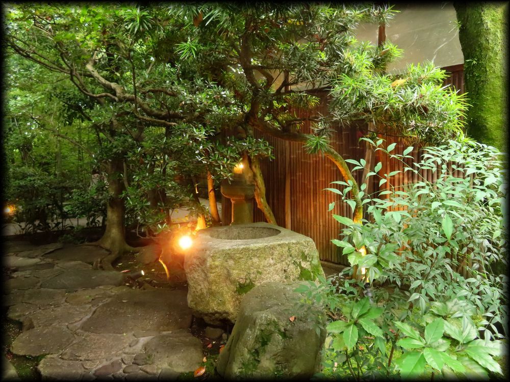 この庭をさらに幻想的な雰囲気にしているのは、石燈籠にともされた灯り。