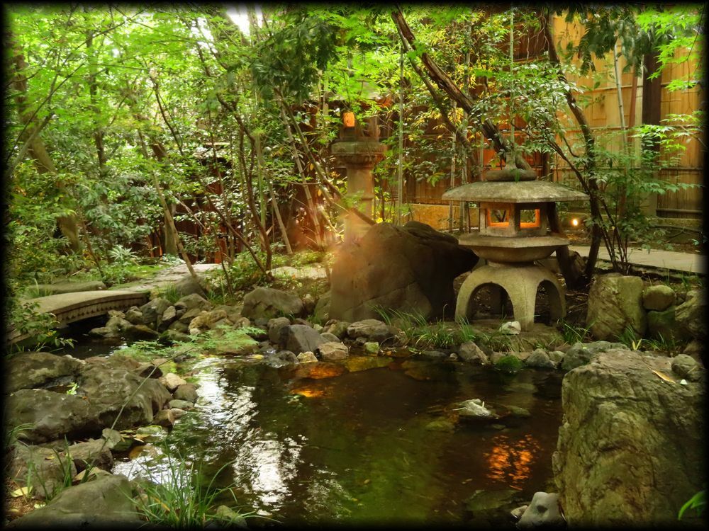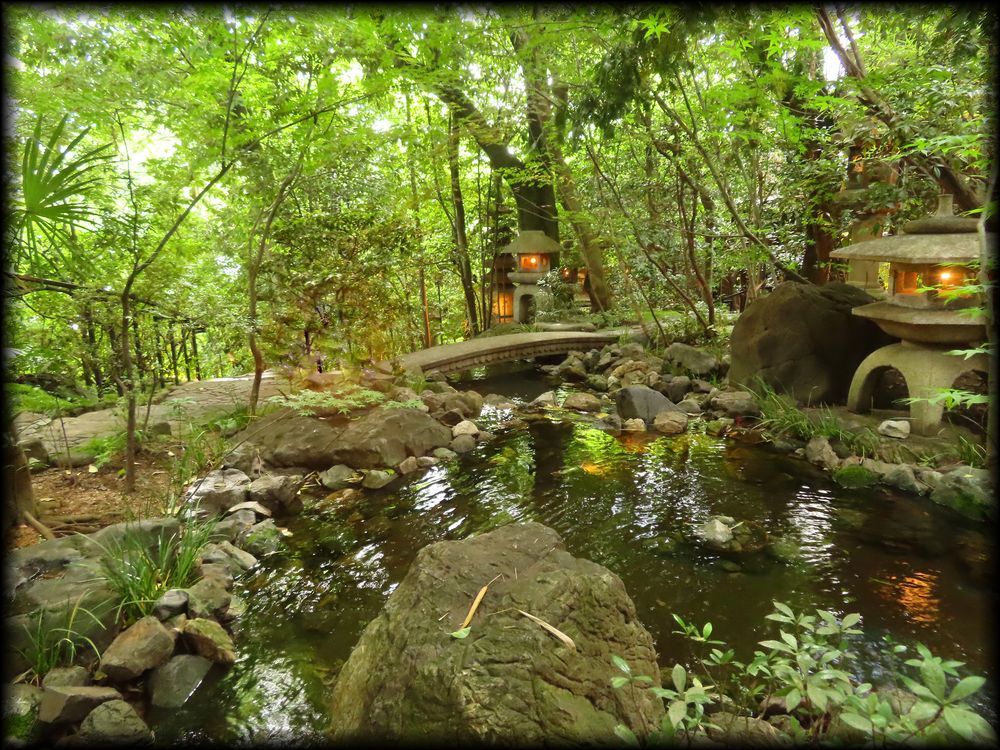 新緑(深緑)と水の流れに包まれた、雑踏とは異次元の庭。