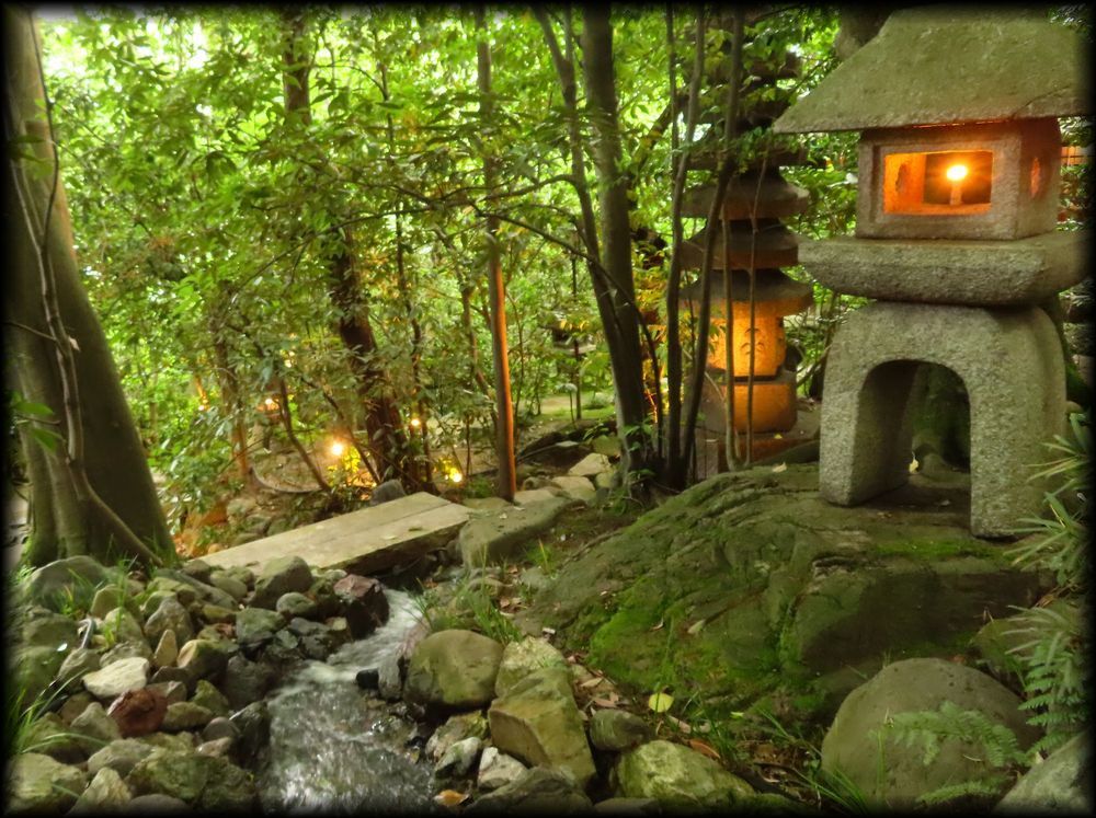 実際に訪れると、清流の水音、石燈籠の灯り、苑路を覆い尽くす深緑が本当に幻想的――。