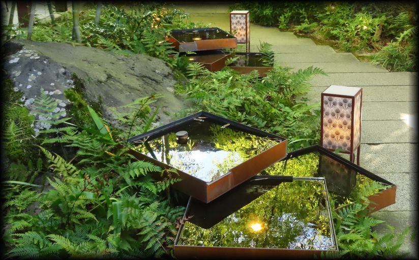 灯籠と盆にたたえられた水が創り出す独特の洗練された造形の美しさ