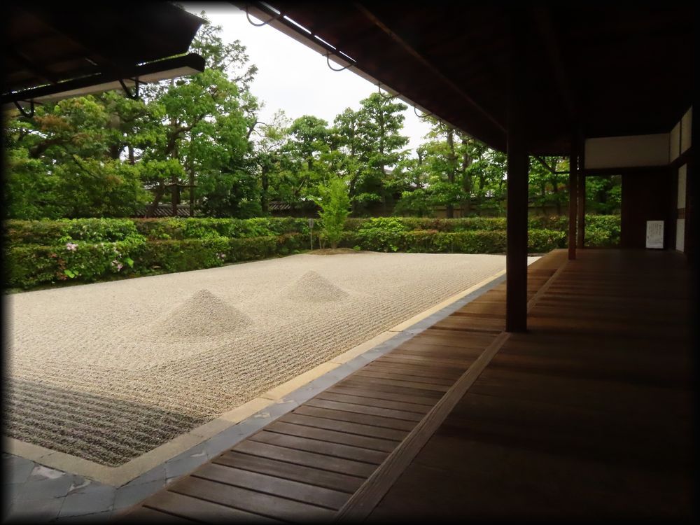 当院の庭は、龍安寺と並ぶ(あるいは対照的な)枯山水の頂点として、余りにも有名。