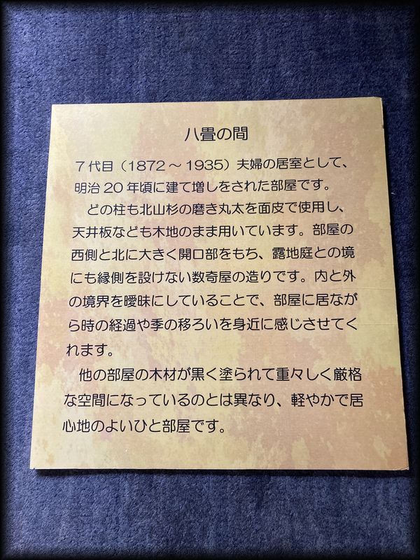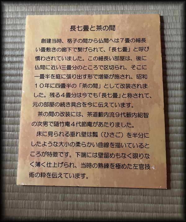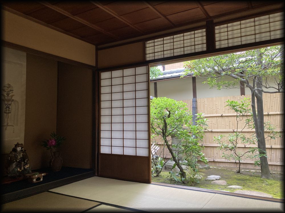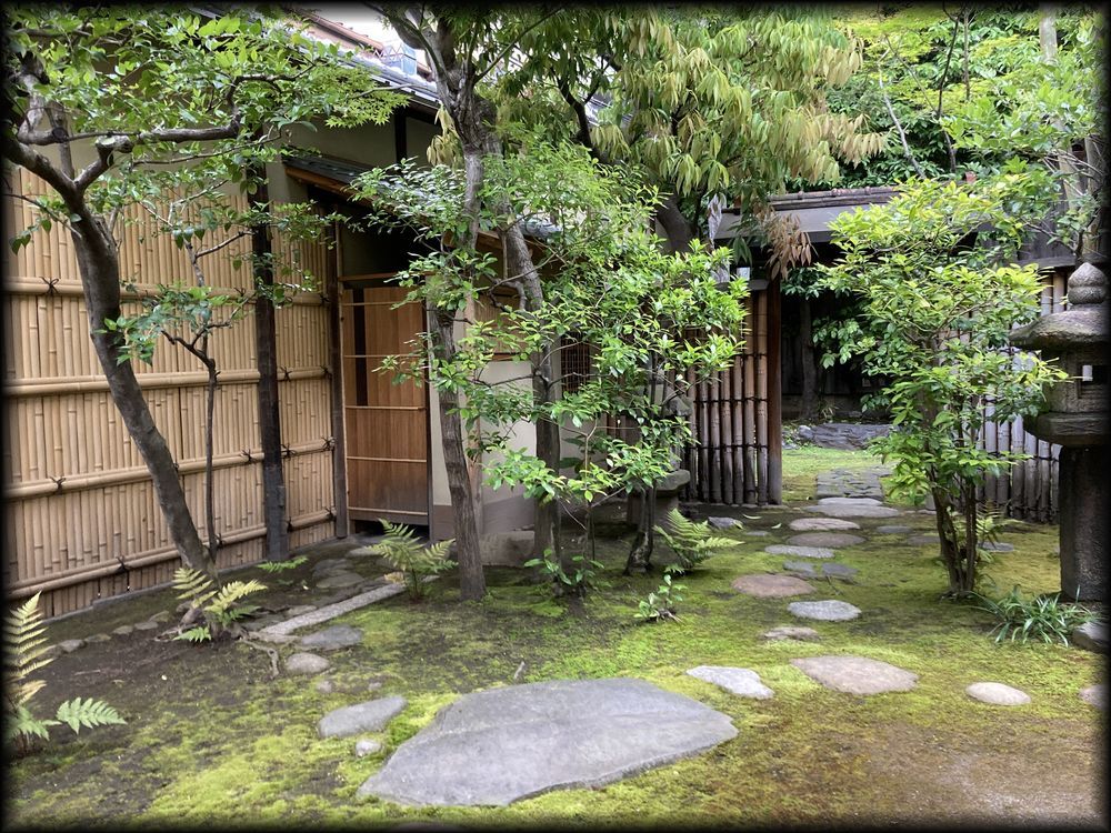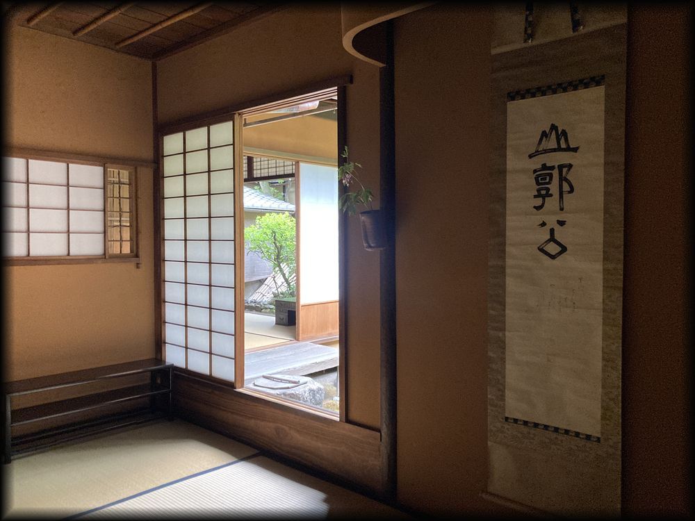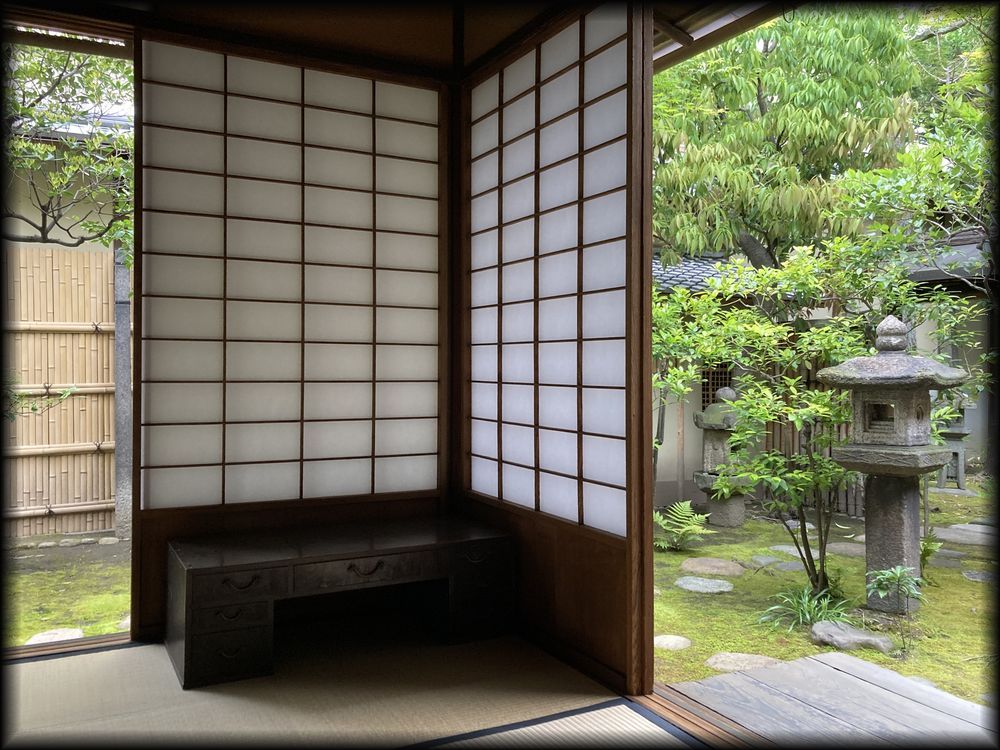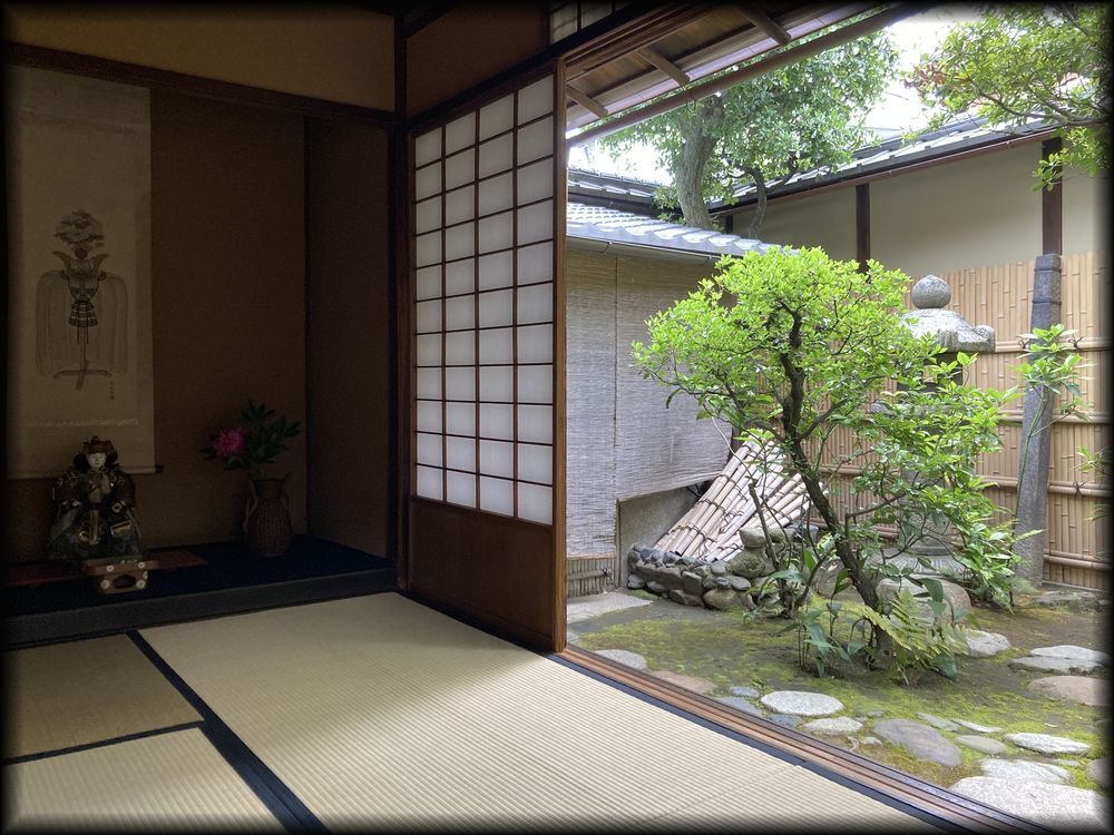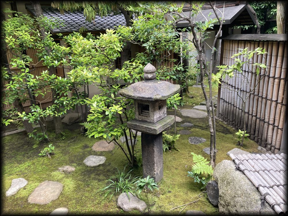 杉本家住宅 杉本氏庭園 ―茶室と露地― ![]() 【所在地】 下京区 【地域】 三条・四条の坪庭 【庭の形態】 坪庭・露地 【面積】 小規模 【作庭者】 不明 【作庭時期】 明治3年(1870年) 【所有者】 杉本家 【訪問日】 2025年5月 【雨天】 特に影響なし 【公開形態】 期間限定 【撮影】 スマホのみOK ![]() ![]() 杉本家住宅の茶室。 さすが京都の町家にふさわしい洗練された、簡素な茶室なのですが、他の茶室は大きく異なる点が。 ![]() 説明にも書かれているとおり、当初から存在した部屋と廊下を「改造」して作られました。 ![]() この部屋の外には、手水鉢が置かれて塵穴も作られているのですが、 他の茶室でおなじみの躙口(にじりぐち)や貴人口はありません (露地から茶室へは八畳の縁側を通って入る仕組みになっています)。 杉本家住宅のホームページから引用![]() ![]() 八畳の間から観る露地。苔も新緑も美しく、簡素な中にもこだわりを感じられて、ぼ~っと眺めていても飽きません。 ![]() ![]() 他の京都の露地にも共通するのですが、実際の広さ以上に奥行きと広がりを感じます。 ![]() 写真では良く分からないのですが、八畳の間から露地を観ると、手前の石燈籠を含めて3基の石燈籠が視界に。 狭い空間に多くの石燈籠を置くと少し雑然としたな印象を受ける場合もあるのですが、 こちらの庭では全くそのような感じはなく、見事に洗練された露地になっています。 ![]() ![]() ちょっとした石燈籠や飛び石の配置が絶妙で、さすが「名勝」に指定されるだけあるなぁと再認識しました。 ![]() ![]() 八畳の間はご夫婦の居室として作られたようです。 ![]() 茶室から八畳の間と玄関前、通り沿いの格子の間までのすっきりとした部屋の配置 ![]() 格子の間の横には洋間も作られています。他の豪商の町家もそうですが、 京都では基本となる和風の居室とは全く雰囲気の違う洋間を設えるケースが多いようです。 南禅寺水路閣のページにも書きましたが、 都市レベルでの洋風化の波が日本で真っ先に押し寄せたことも、影響しているかもしれません。 明治初期に京都御所の横にキリスト教主義の学校(同志社や平安女学院)の煉瓦の校舎が建てられ、 コーヒーやパンの人口当たりの消費量は日本の都道府県で首位。 旧来の伝統に固執して異文化を拒否するのではなく、 良い文化は受け入れていこうという気風は地方では意外に知られていない「京都らしさ」かもしれません。 ![]() → 杉本家の座敷と仏間 Copyright © Goto N. All Rights Reserved |