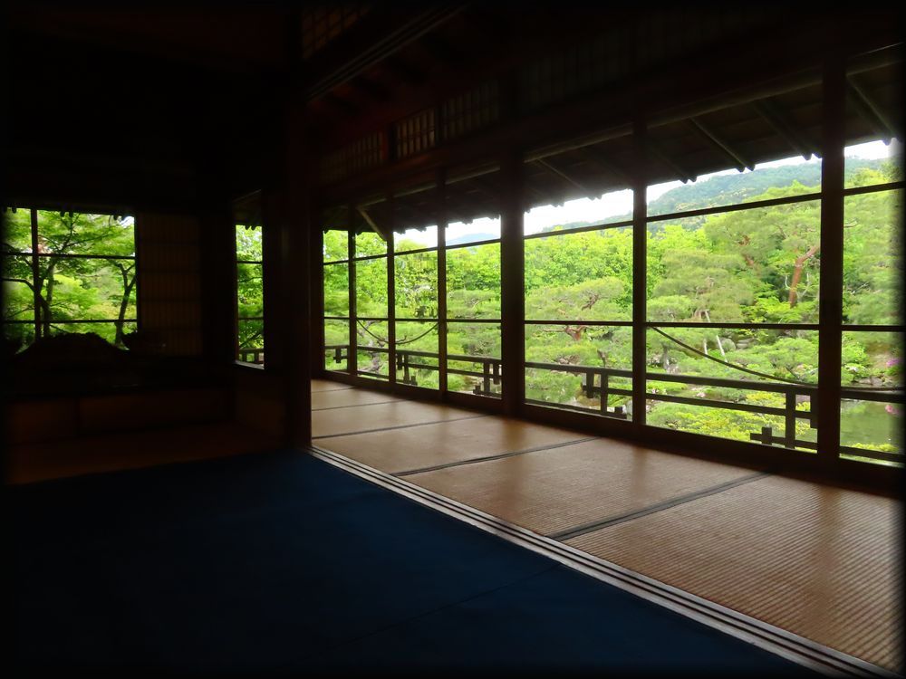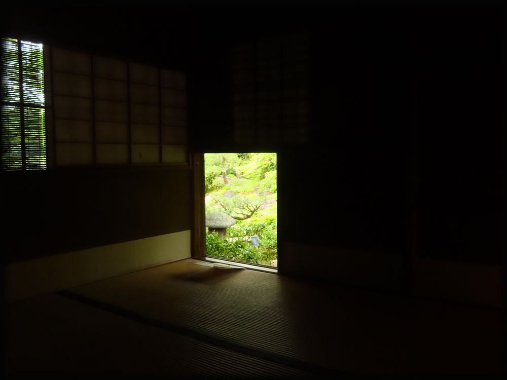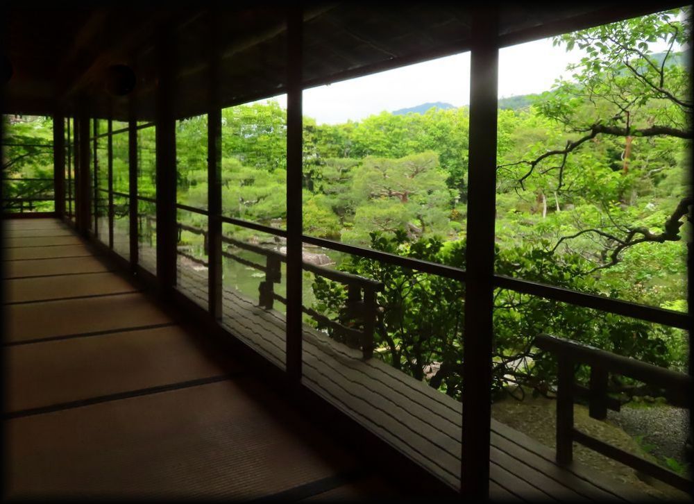 縁側から観る庭園は額縁効果もあり、外で鑑賞するときと微妙に異なる美しさ。