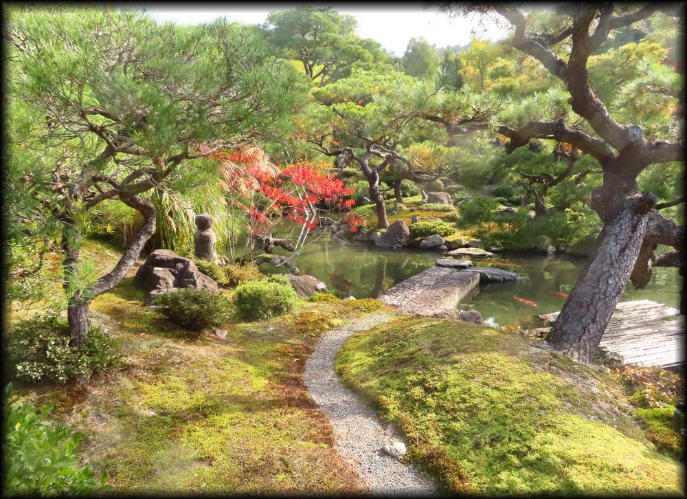 聚遠亭の露地から観る大池周辺の景色。對龍山荘はどの場所からどこを観ても完璧な美しさですね。