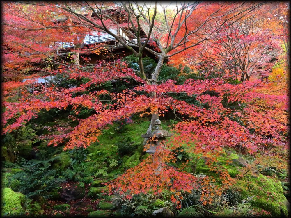 苔寺(西芳寺) 緑一色の苔の世界に映える真っ赤な紅葉。ある面、日本の美の原風景ですね。11月と12月に拝観 |