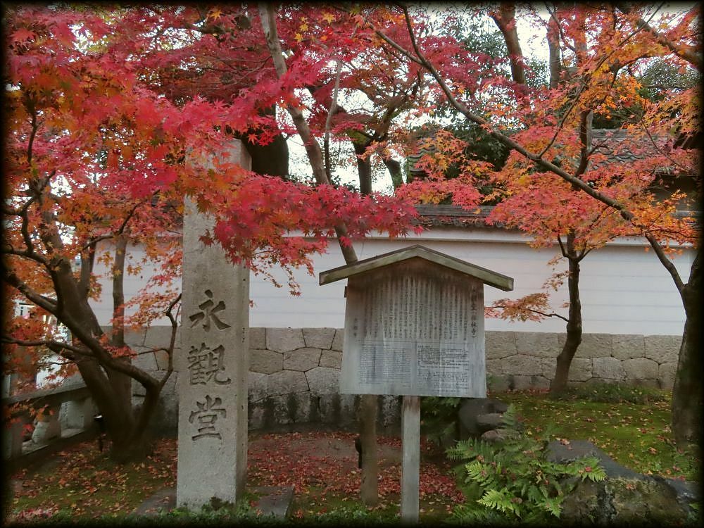 永観堂(禪林寺) 紅葉の風景 50音順一覧 MAP 南禅寺界隈の庭園 ![]() 東福寺とともに、紅葉の名所で有名な永観堂。 京都では「秋はもみじの永観堂」と言われるほど、紅葉の季節には真っ先に連想される寺院です。 ![]() ![]() ただその年の気候、訪れる時期、天候によって、紅葉の美しさは微妙に変わります。 桜よりも、色づき具合などが予想できないところも、また紅葉の楽しみではありますが・・・。 ![]() ![]() これまで訪れていちばん美しかったのは遙か以前の2010年11月27日。 人出もすごかったですが、さすがに紅葉は綺麗で。コンパクトデジカメで撮影し、色の修正なしでこの鮮やかさ ![]() ![]() 天気にも恵まれたためか、紅と黄色がひときわ鮮やかでした。 ![]() ![]() 阿弥陀堂(本堂)周辺の燃え立つような紅葉 ![]() ![]() 燃え立つような紅葉の赤に境内全体が染まるほどの迫力 ![]() 御影堂の朱の柱と紅葉の色が見事に調和 境内の至る所で、紅葉、黄葉の洪水 ![]() 永観堂の隣に母校があります。高校時代は永観堂の紅葉、意識したことなかったなぁ。残念 ![]() 久しぶりに訪れた永観堂。門の前から見事な紅葉 ![]() 紅葉の間から見る多宝塔も美しく ![]() ![]() ![]() 雪崩のような紅葉、覆い被さる紅葉、地面に広がる敷き紅葉――。 境内の至る所で紅葉を堪能できたのですが・・・・。 ![]() ![]() 庭として最大の見どころである釈迦堂前の庭園は、少し訪れた時期が遅かったようで、 紅葉は少し枯れ気味でした。 ![]() ![]() 釈迦堂の南庭に至っては、散り果てた紅葉で覆い尽くされていました。 わびさびの風情を感じられ、庭の造作もはっきりと見えるのがメリットと思えなくもないのですが、 敷き紅葉も枯れてしまっていて残念――。 ![]() 紅葉以外の季節は、比較的空いている境内 ![]() 釈迦堂前の庭園は新緑の季節も美しく。紅葉以外の時期はそれほど混んでいないため、 盛り砂が印象的な庭をゆっくりと眺めることができます。 ![]() ちなみに紅葉の季節は、縁側に座れないほどの混雑です。参考まで ![]() 多宝塔につながる臥竜廊。永観堂にはいくつものお堂があり、 見返り阿弥陀などの見どころも多いので、紅葉の季節以外にも参拝することをお勧めします。 永観堂の境内図は公式サイトをご参照ください。 ![]() 永観堂は平安時代、853年の創建。当初は真言宗でしたが、いまは浄土宗西山禅林寺派の本山なりました。 紅葉以外では、阿弥陀さまが振り返っている姿を現した阿弥陀堂の「見返り阿弥陀(阿弥陀如来立像、重要文化財)」で有名です。 ちなみに南禅寺の名前の由来も「禅林寺の南」が由来となっています。 Copyright © Goto N. All Rights Reserved. |