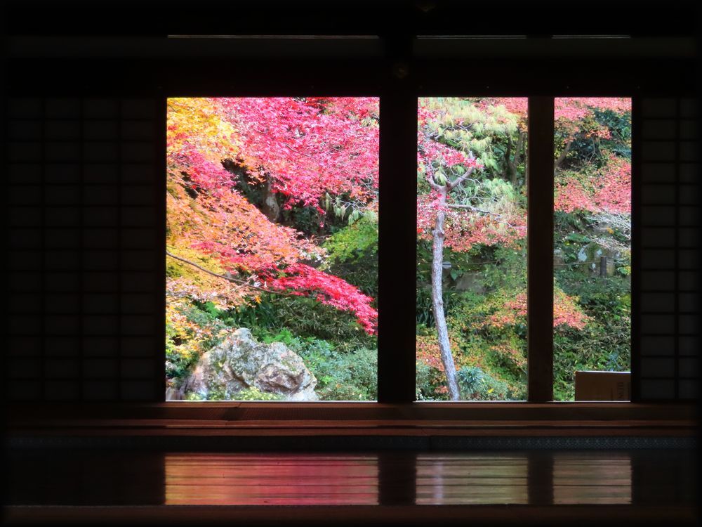 いつもはあまり混雑しない、山の中腹に抱かれた静かな寺院なのですが、紅葉の季節は受付で行列ができるほどの人並み。