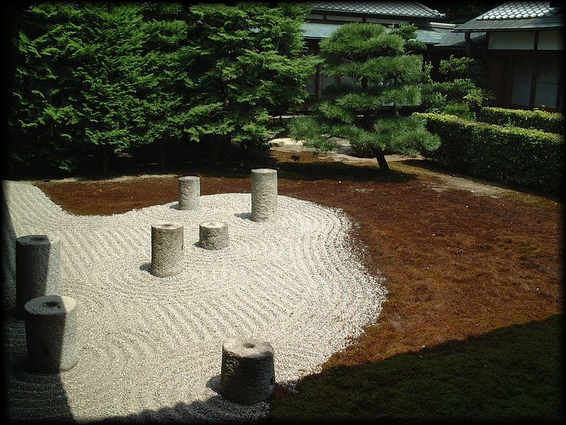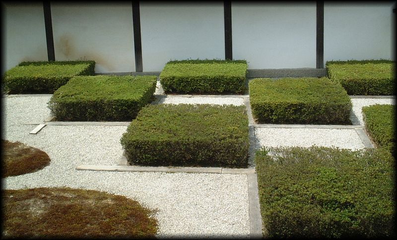 )。市松模様を描く刈り込みと砂が斬新です。