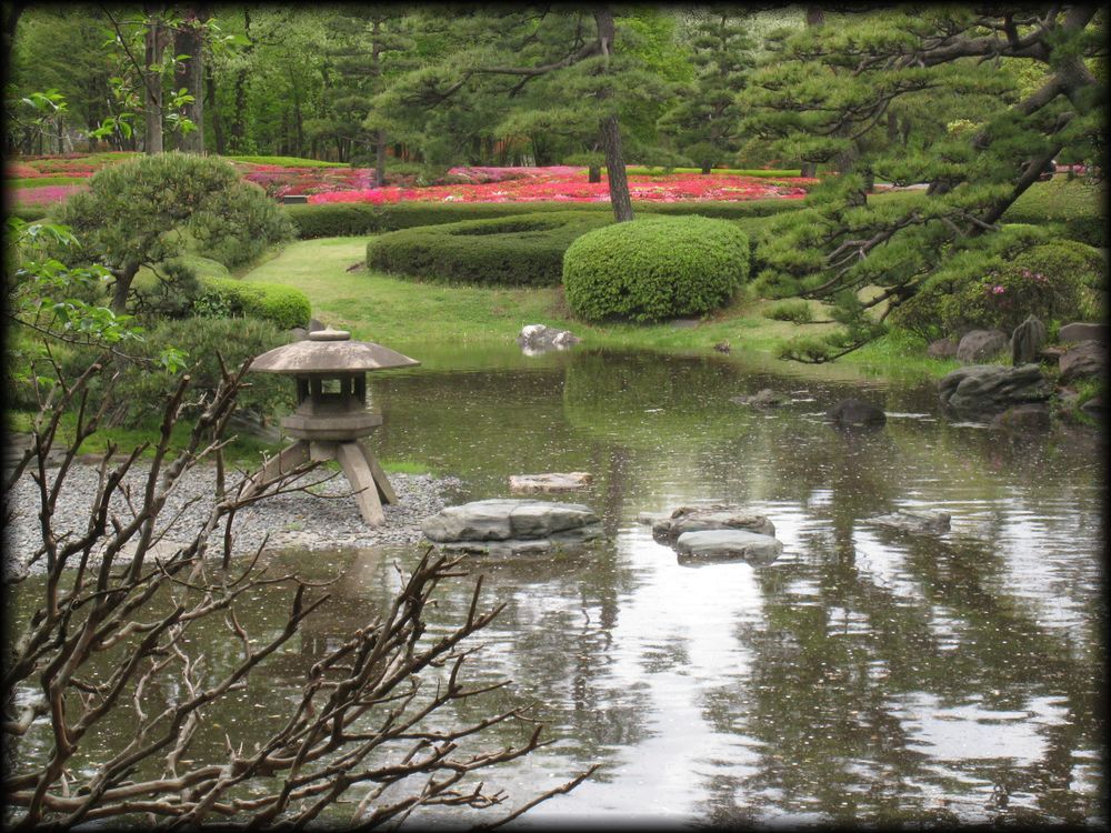 旧江戸城二の丸庭園 (皇居東御苑) ![]() 東京の庭園 トップページ さくらの風景 東京の大名庭園 ![]() ![]() 都心のど真ん中に残された「江戸」の中枢、旧江戸城(現・皇居)。都心に残された極めて貴重な自然と空間で、 二の丸庭園は、徳川家斉(11代将軍)時代に作られた庭園を復元したとされています。 千代田区にあるとは思えないこの広々とした美しさ。 ![]() 京都御所の庭に通じる優美な趣き ![]() ![]() ![]() 石灯籠と州浜、松ヶ枝に降り掛かる桜。日本的な美しさを凝縮した構図です。 ![]() 桜の数はそれほど多くないのですが、都心でこれだけの自然を堪能できるだけで満足です。 ![]() ![]() ![]() 二の丸庭園の入り口に建つ諏訪の茶屋 ![]() ![]() ![]() サツキが咲く頃は圧巻の美しさ ![]() 東御苑は菖蒲でも有名 ![]() 東京の都心でこれだけ豊かな自然が残されているのは皇居のおかげですね。 ![]() こちらは本丸跡。ここに江戸城の主要な建物が並んでいたかと思うと感無量。兵どもが夢の跡――。 ![]() ![]() 皇居東御苑の開園日は基本的に月曜と金曜を除く毎日ですが、 詳細は宮内庁のホームページを参照してください。入園料は無料です。 Copyright © Goto.N. All Rights Reserved |