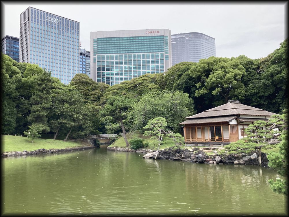 ![]() ![]() とにかく壮大、雄大な大庭園! 汐留の高層ビル画を背景に広がるこの空間は「都会のオアシス」という表現を越え、東京とは思えない別次元の世界というイメージです。 ![]() これだけの規模の庭園はどうやって生まれたのか。 まず江戸時代初期に三代将軍・徳川家綱の三男・綱重が入封した甲府藩下屋敷の庭園として整備された後、 綱重の跡継ぎである綱豊が浜屋敷として使用。後に綱豊が七代将軍の家宣となったことから、将軍家の庭となり、 その後は幕末まで「御浜御殿」と呼ばれていました。 公式サイトから引用明治以降は宮内省管轄の「浜離宮」、戦後は東京都管轄となり、それ以降は浜離宮恩賜庭園という名称になっています。 この庭のスケールの大きさは、そのまま徳川将軍家の権力の偉大さにつながる気がします。 ![]() 浜離宮は歴史的な経緯からか、なぜか全国でも珍しく特別史跡・特別名称のW指定を受けていますが、 大名庭園の面影を色濃く残しているのは「潮入の池」の周辺 ![]() 中島の御茶屋と汐留のビル街。浜離宮では、とにかく広すぎて細部よりも雄大な光景にとらわれてしまいますね。 ![]() 潮入の池に面した「松の御茶屋」では、大坂から敗走した徳川慶喜が一時休憩したと言われていますが、 現在の建物は2010年(平成22年)に復元されました。 ![]() 室内も創建当時の姿を復元したそうで、月にたなびく霞をイメージした円窓、欄間の浜千鳥の透かし彫りが印象的です。 ![]() ![]() 松の御茶屋から眺める潮入の池 ![]() こけら葺きの「燕の御茶屋」。燕をモチーフにした釘隠しが使われていることが名称の由来とか。 十一代将軍、徳川家斉の時代の建物を2015年(平成27年)に復元しました。 |