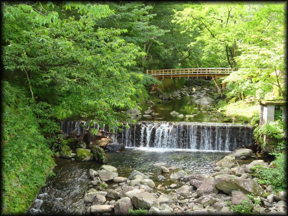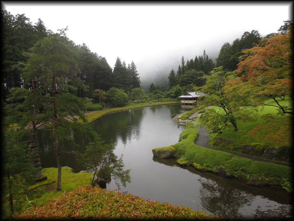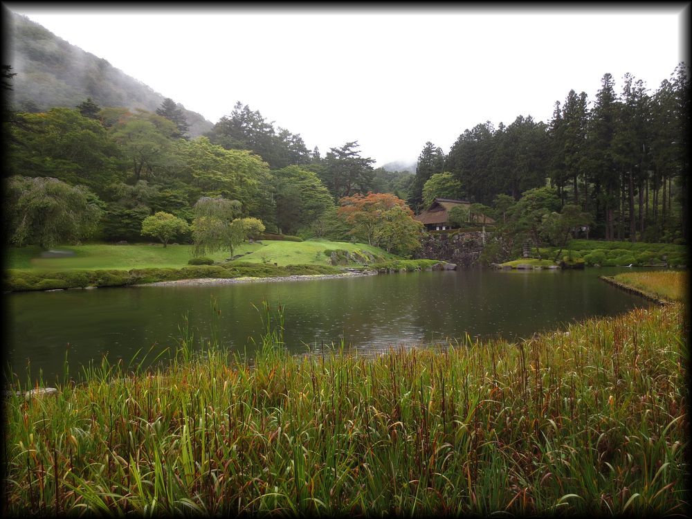 ![]() 栃木県鹿沼市の山間、「古峯ケ原(こぶがはら)」に鎮座する古峯(ふるみね)神社。 日本武尊を祭神として、地元では「天狗の社」として篤い信仰を集めています。 その神社の神苑として作られたのが「古峯園(こほうえん)」。 名前すら知らなかったこの名園に、Yuky Rさんが見事なハンドルさばきで山道を運転し、連れてきてくださいました。 ![]() ![]() 境内は新緑に囲まれ、渓流が流れるという美しい自然の中。この景色だけでも十分に「来て良かった」と思えるほど。 反対に人工物である「庭」が果たして自然の美しさに太刀打ちできるのかな、と言う懸念も (庭は都市の中にあるからこそ、その美しさが映える、という勝手な自論もあったので)。 ![]() ![]() 実際に庭園に入ってみると、自分のちっぽけな自論が吹き飛ぶほどの壮大な絶景! 見事に自然との融合が実現されていました。 ![]() ![]() 池の周囲で咲き乱れる菖蒲も色とりどりの美しさ――。 ![]() ![]() それにしても、ほんとなんて雄大な風景なんだろう――。近くまで迫る山並みや杉林をすべて借景に組み込む壮大な作庭。 池(峯の池)の周囲の風景は、帝王の庭「修学院離宮」を彷彿とさせます。 ![]() ![]() ![]() 雨の日に訪れたときは、すぐそこまで雲が降りてくる幻想的な雰囲気に ![]() ![]() 「峯の池」の畔に建つ四阿(あずまや)「静峯亭(せいほうてい)」の中からは額縁庭園が楽しめます。 ![]() ![]() ![]() ![]() 古峯園がすごいのは、ただ雄大なだけではなく、とても細かいところまで配慮が行き届いているところ。 要所要所に石灯籠が配され、漠然となりがちな広大な庭を引き締めています。 ![]() 壮大な風景の中で一基の石燈籠に気づいたとき、視線と意識の焦点がそこに収斂される見事な庭園の美学 ![]() ![]() 「峯の池」の奥には滝も流れています。ちゃんと鯉魚石(りぎょせき、水を受けている石で、鯉が滝を登っている姿を現す)が配され、 見事な滝石組となっています。 ![]() ![]() 滝周辺の護岸の石組みと配置、苔の美しさも完璧――。 ![]() 古峯園にはこの他にも露地、苔庭などがあり、 日本庭園の要素が全て含まれ、それも全ての庭が完成された水準に達しているという点がすごいです。 この天下の名園を作庭したのは、七代目小川治兵衛の甥に当たる岩城亘太郎(いわき・せんたろう)。 古峯園以外では、ホテルニューオータニなどの庭園も手掛けています。 岩城氏の壮大な構想と細部までのこだわり、庭を愛する一市民として心から尊敬します・・・・。 |